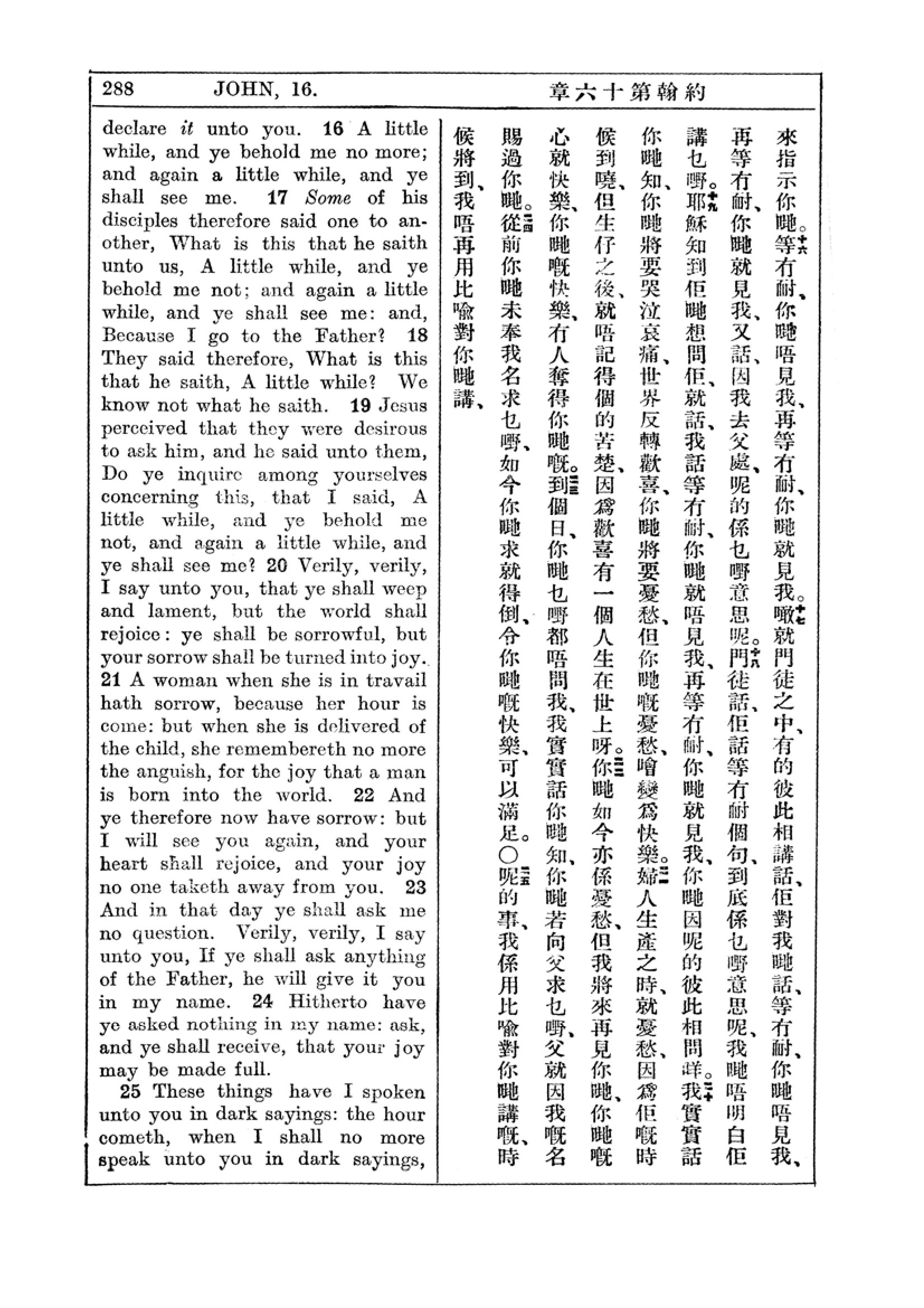 1927年新约全书(中英对照) 约翰福音 16 章 16 节到 16 章 25 节