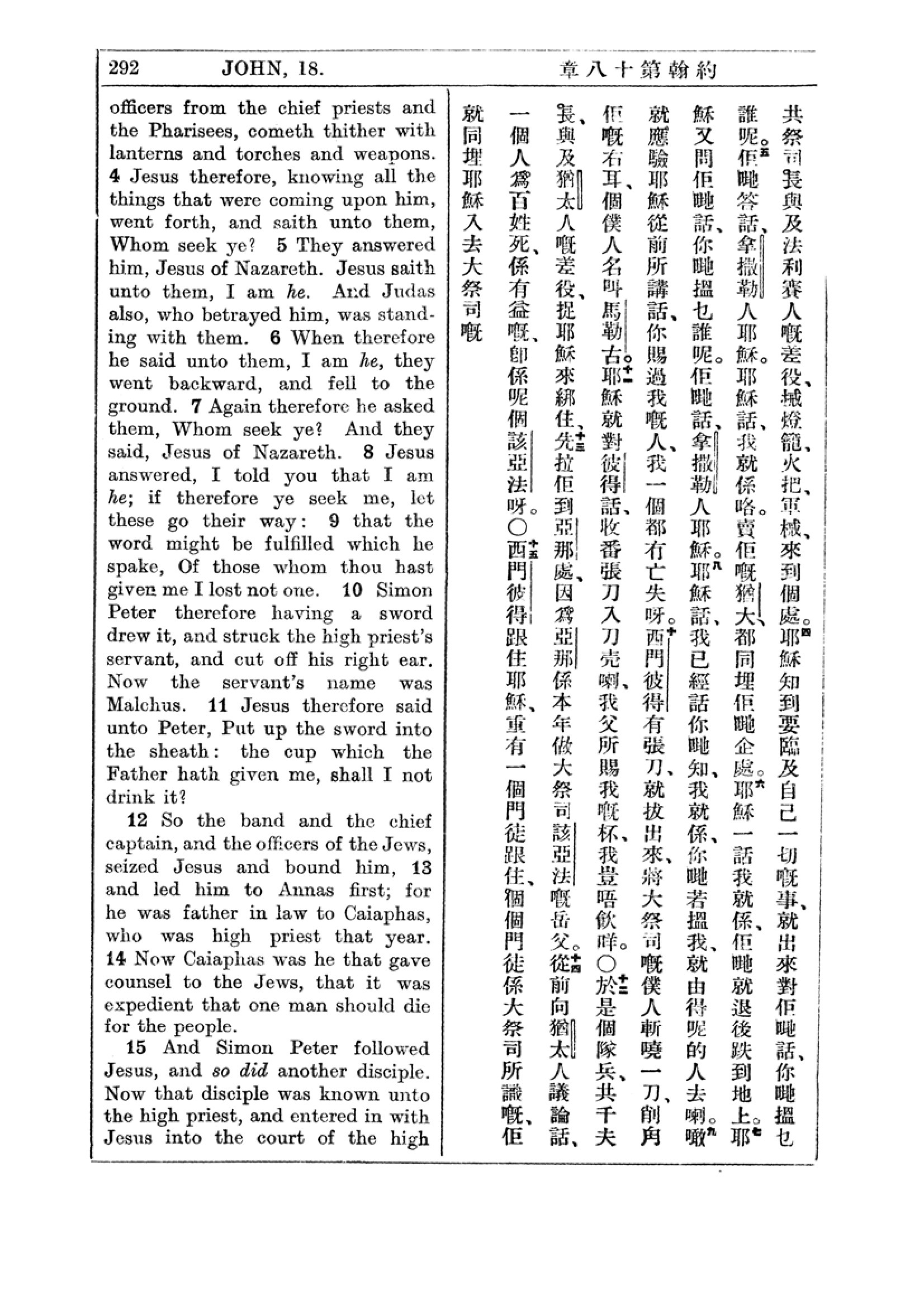1927年新约全书(中英对照) 约翰福音 18 章 4 节到 18 章 15 节