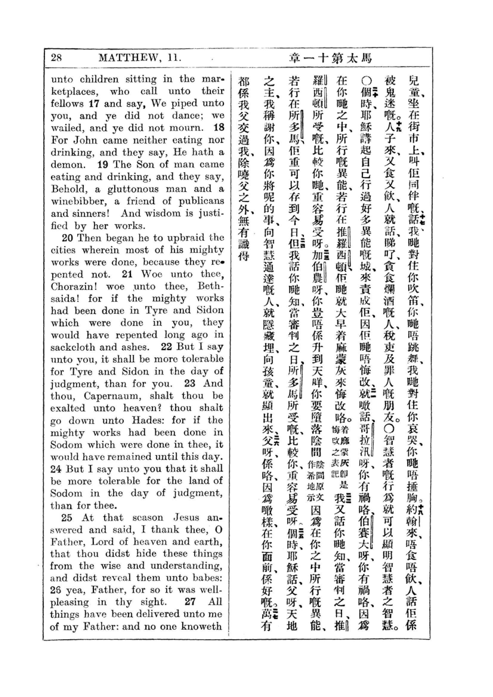 1927年新约全书(中英对照) 马太福音 11 章 17 节到 11 章 27 节