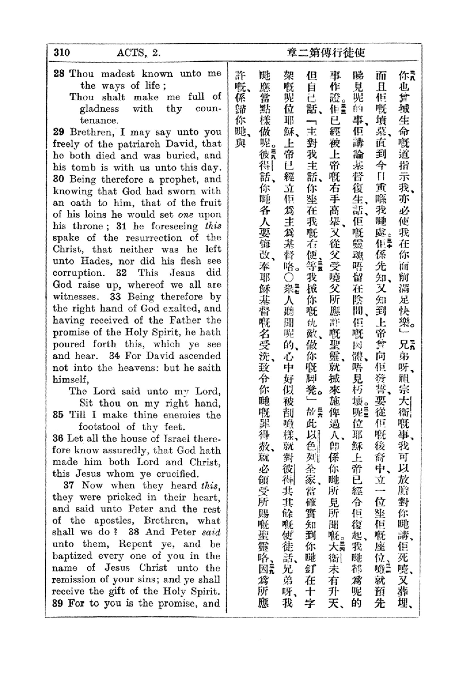 1927年新约全书(中英对照) 使徒行传 2 章 28 节到 2 章 39 节