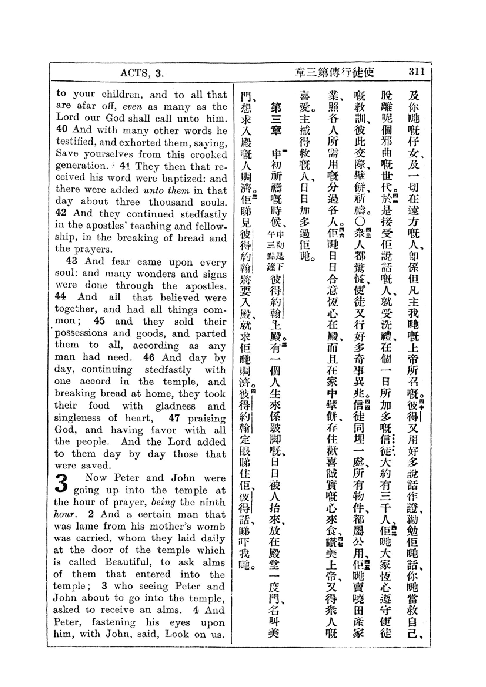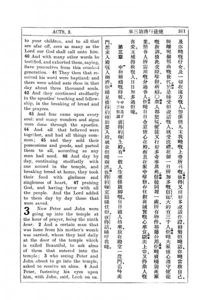 1927年新约全书(中英对照) 使徒行传 2 章 40 节到 3 章 4 节