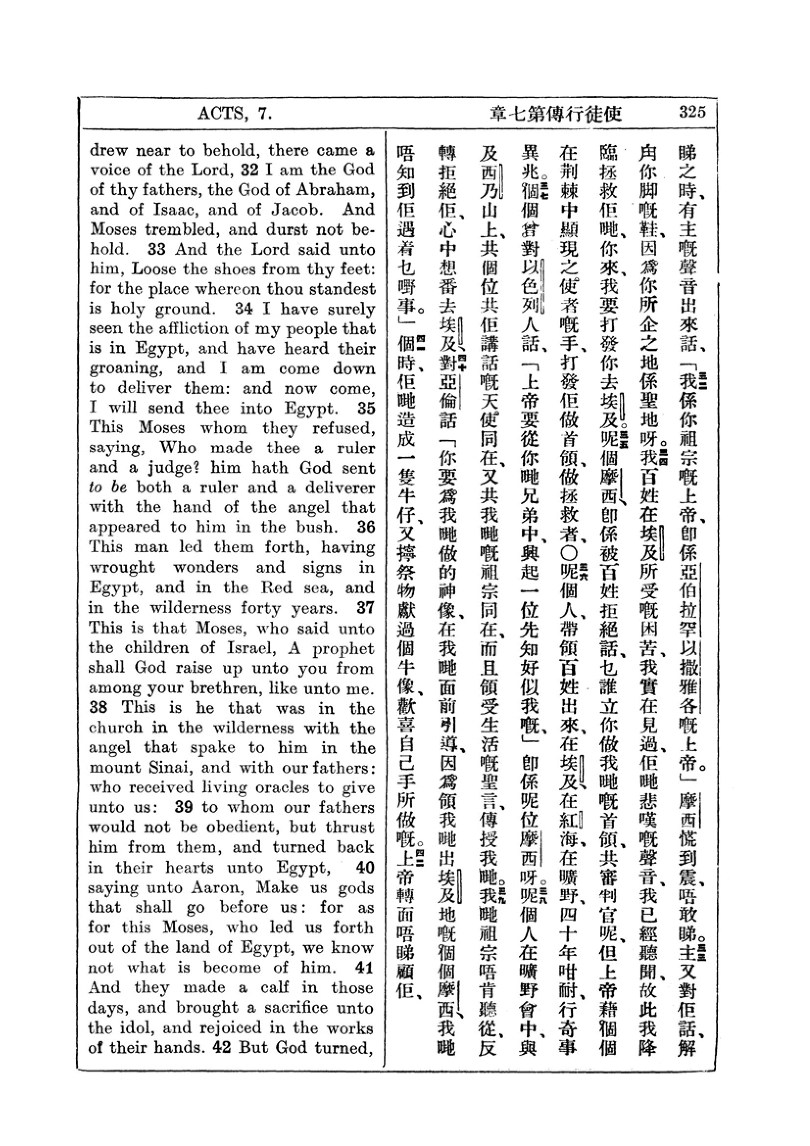 1927年新约全书(中英对照) 使徒行传 7 章 32 节到 7 章 41 节