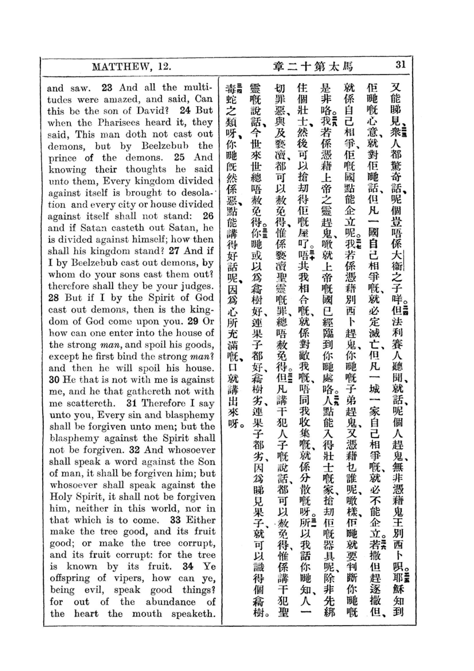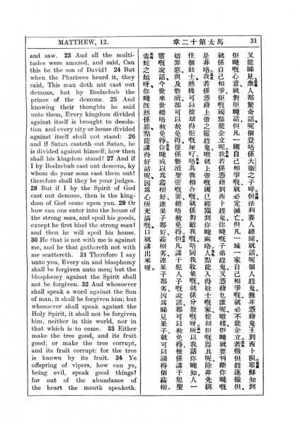 1927年新约全书(中英对照) 马太福音 12 章 23 节到 12 章 34 节