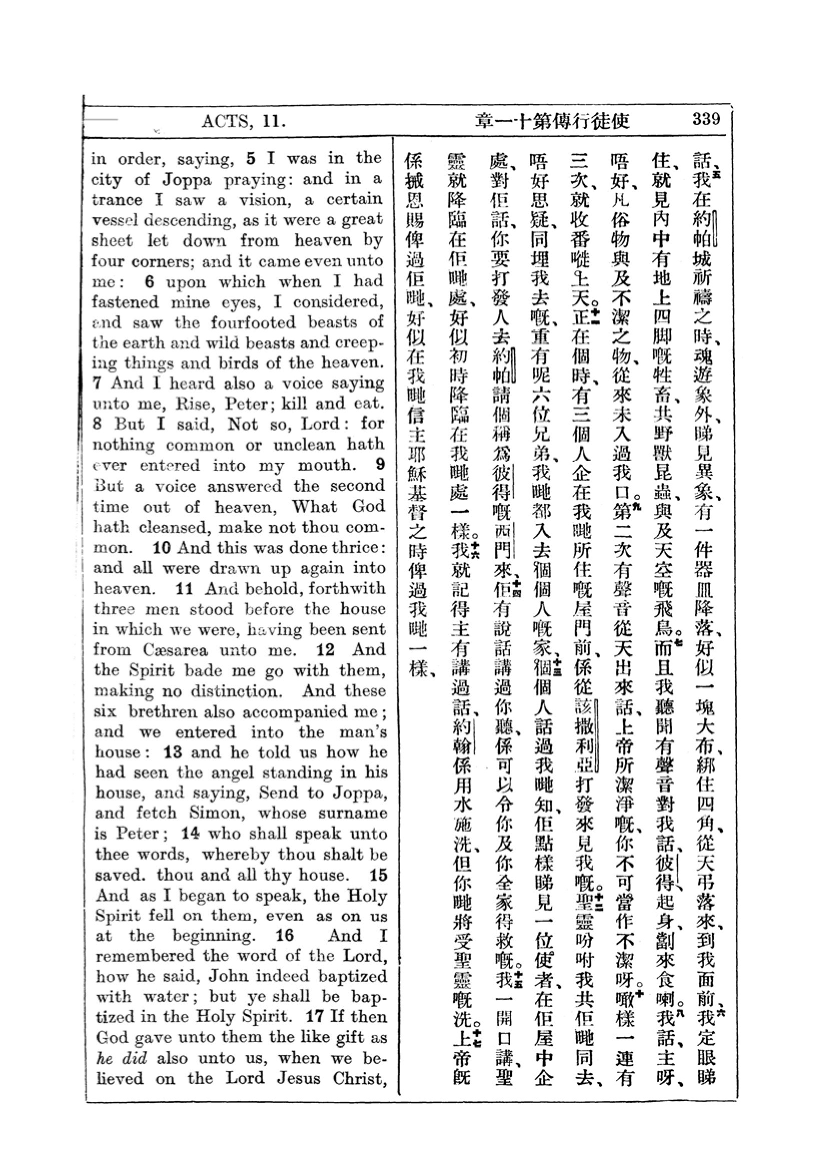 1927年新约全书(中英对照) 使徒行传 11 章 5 节到 11 章 17 节