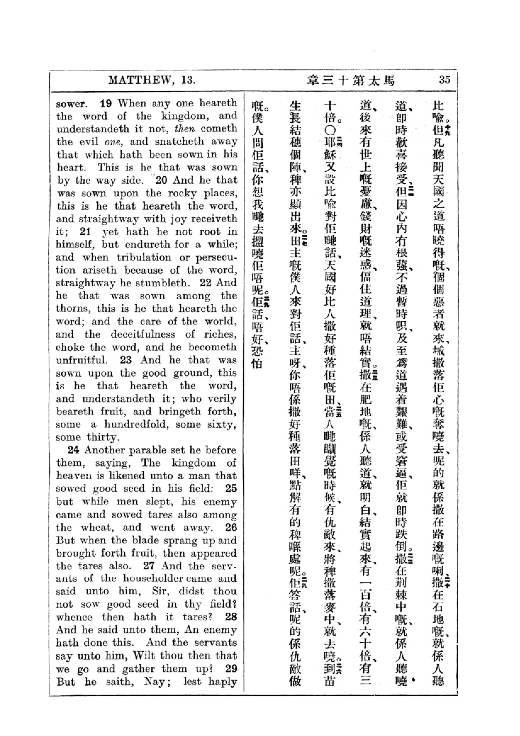 1927年新约全书(中英对照) 马太福音 13 章 19 节到 13 章 29 节