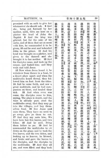 1927年新约全书(中英对照) 马太福音 14 章 8 节到 14 章 20 节