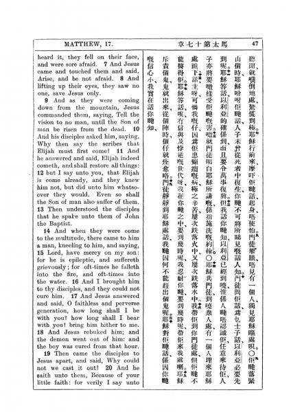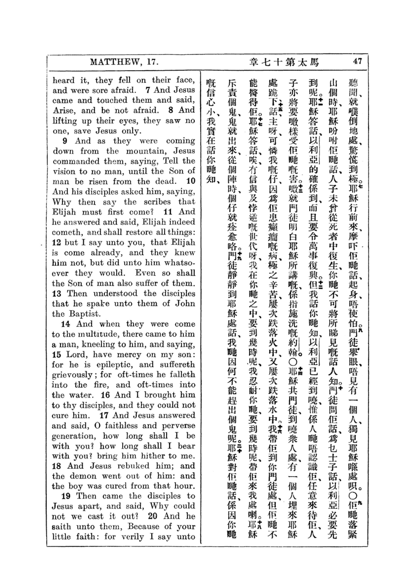 1927年新约全书(中英对照) 马太福音 17 章 7 节到 17 章 20 节