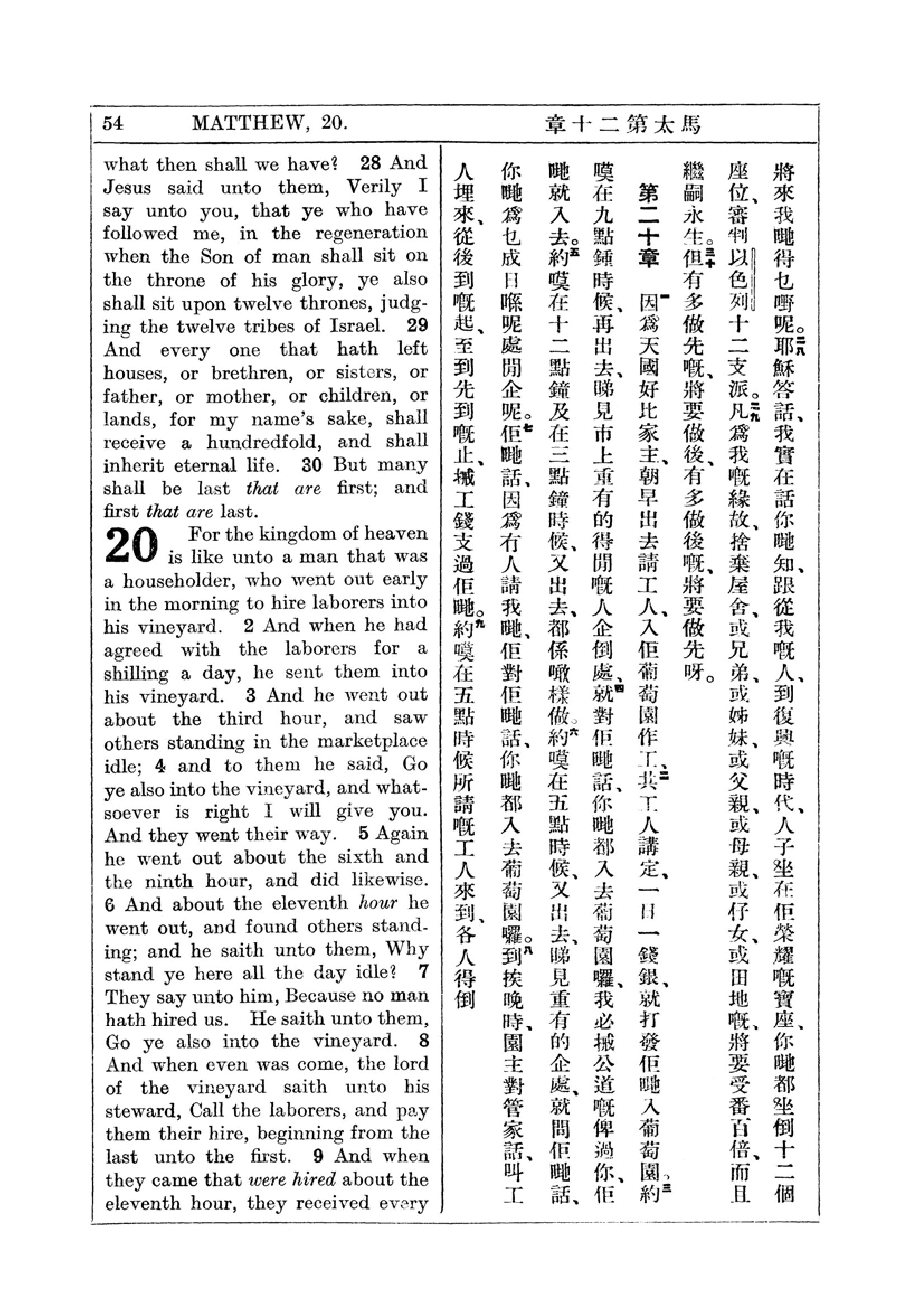 1927年新约全书(中英对照) 马太福音 19 章 28 节到 20 章 9 节