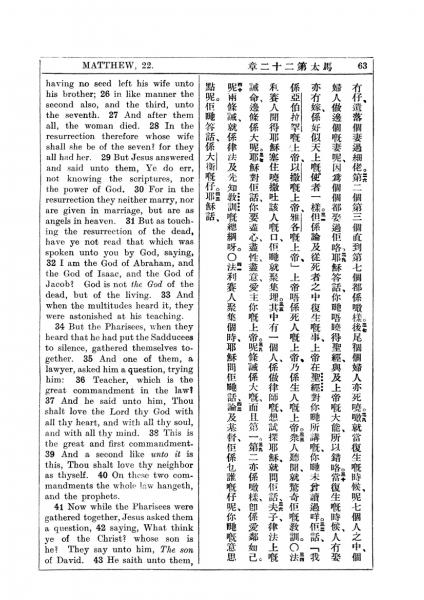 1927年新约全书(中英对照) 马太福音 22 章 26 节到 22 章 43 节