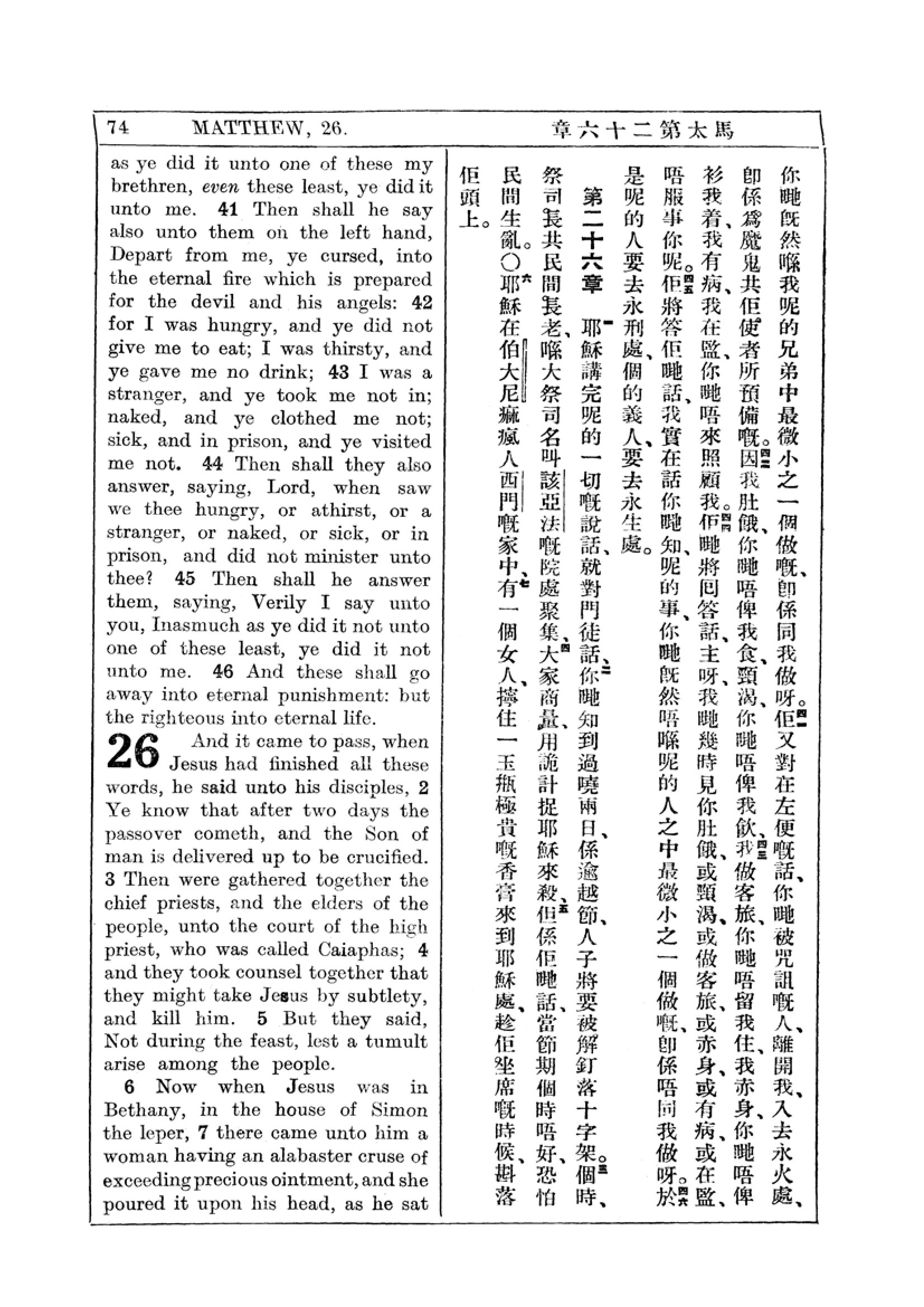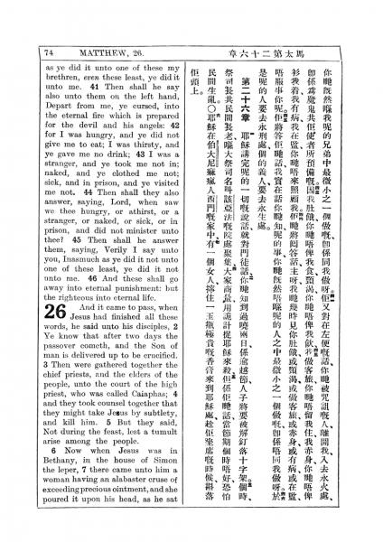 1927年新约全书(中英对照) 马太福音 25 章 41 节到 26 章 7 节