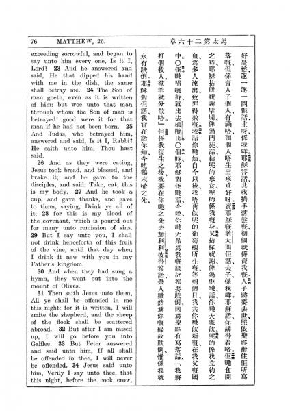 1927年新约全书(中英对照) 马太福音 26 章 23 节到 26 章 34 节