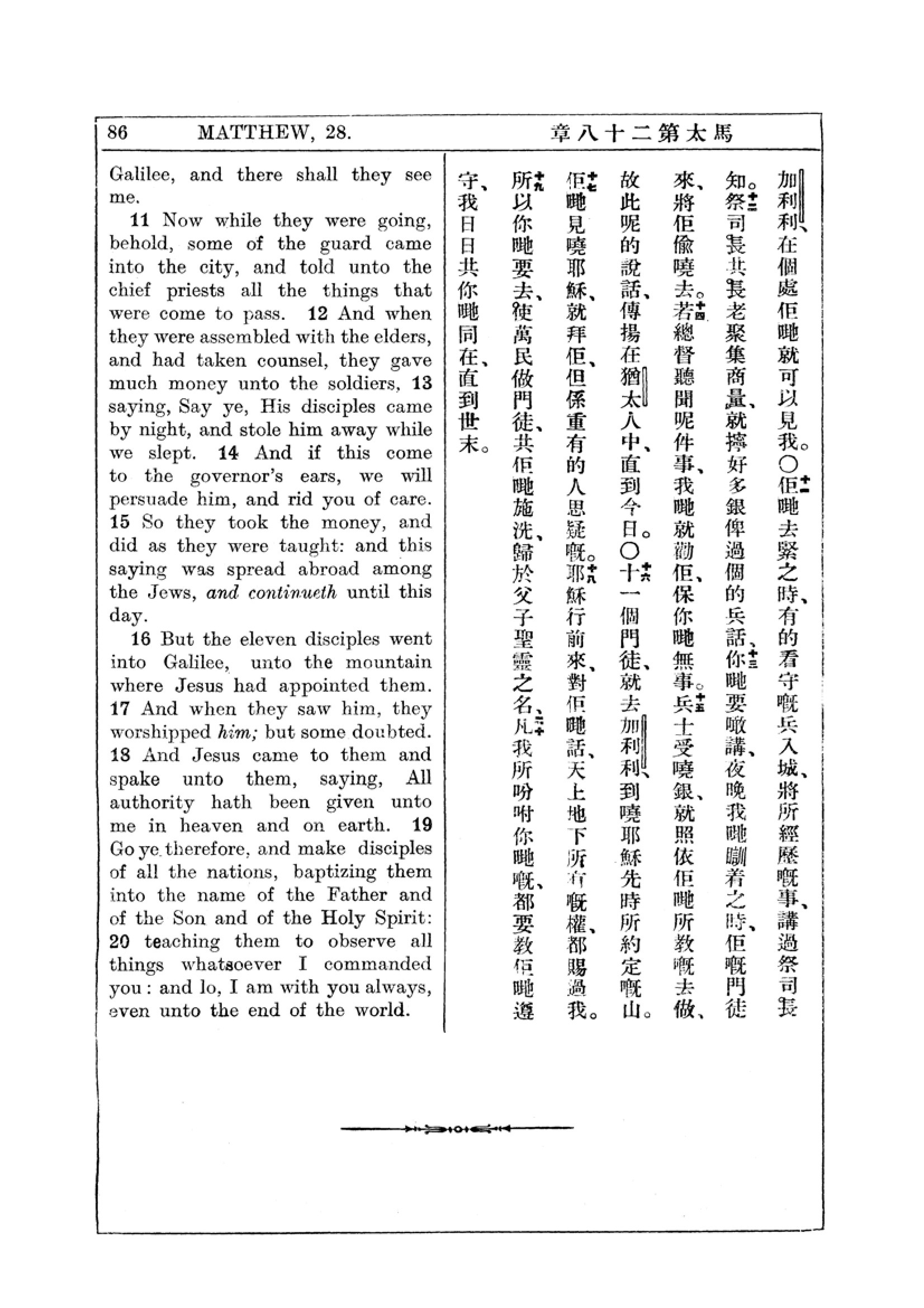 1927年新约全书(中英对照) 马太福音 28 章 11 节到 28 章 20 节