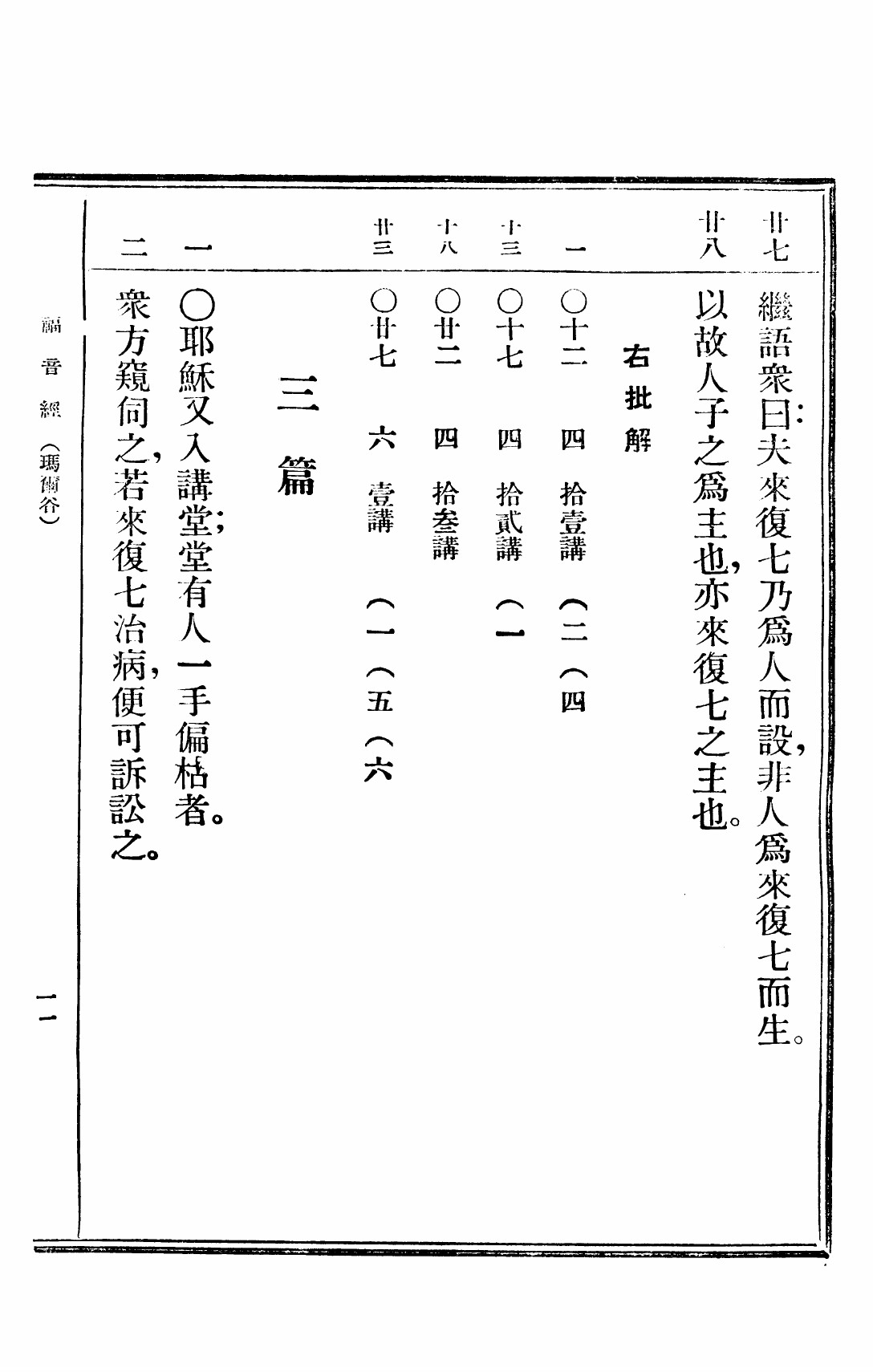 1949年救世福音 马可福音 2 章 27 节到 3 章 2 节