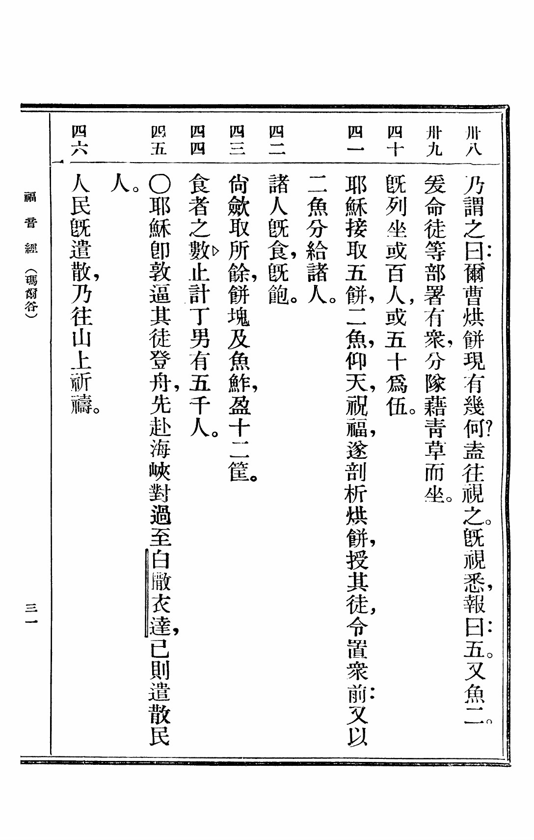1949年救世福音 马可福音 6 章 38 节到 6 章 46 节