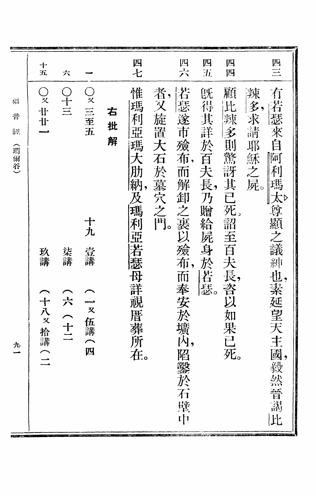 1949年救世福音 马可福音 15 章 43 节到 15 章 47 节