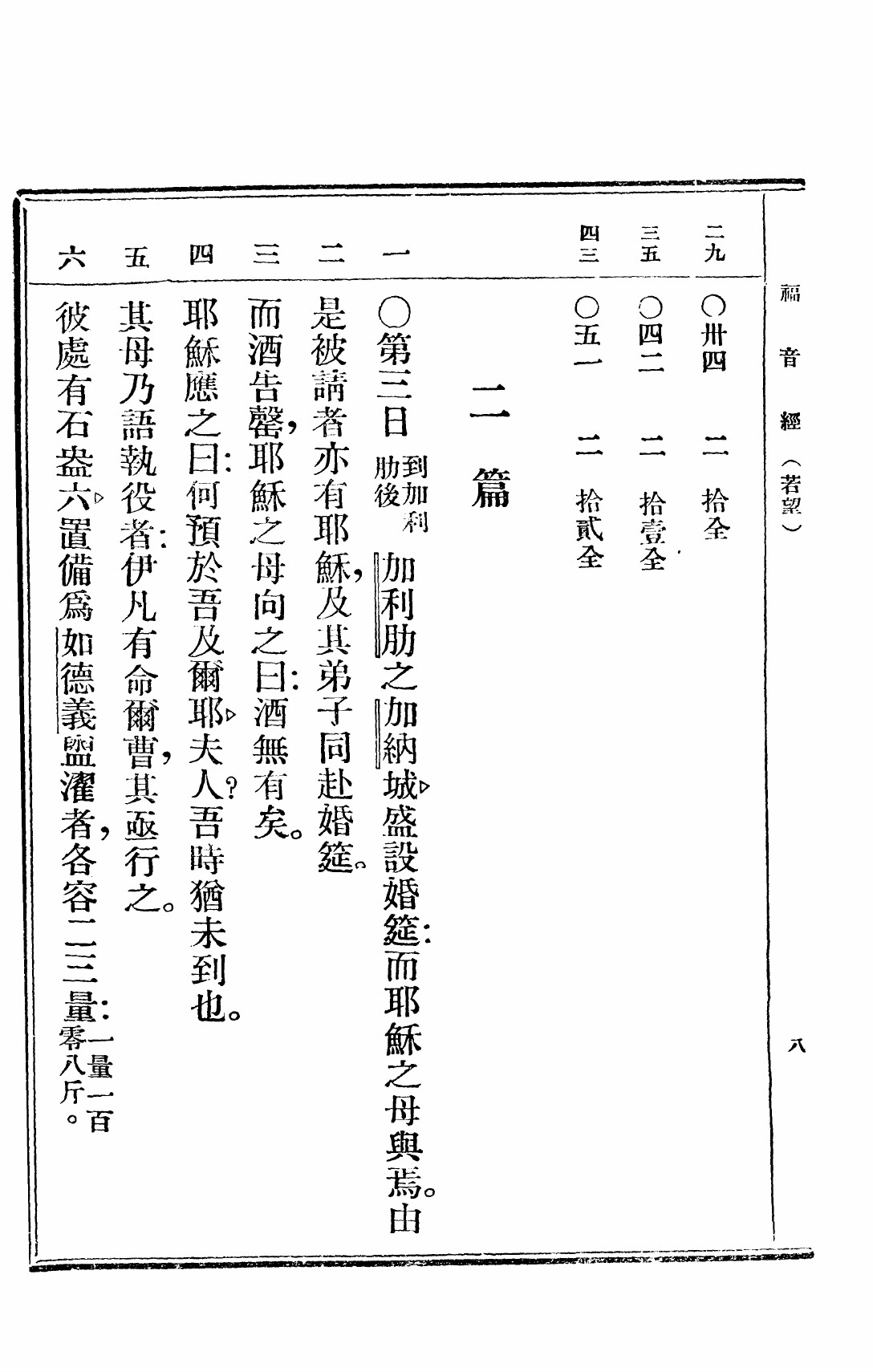 1949年救世福音 约翰福音 2 章 1 节到 2 章 6 节