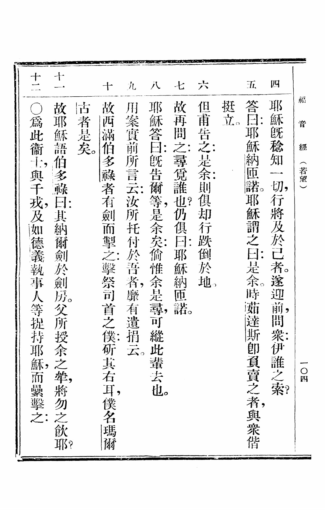 1949年救世福音 约翰福音 18 章 4 节到 18 章 12 节