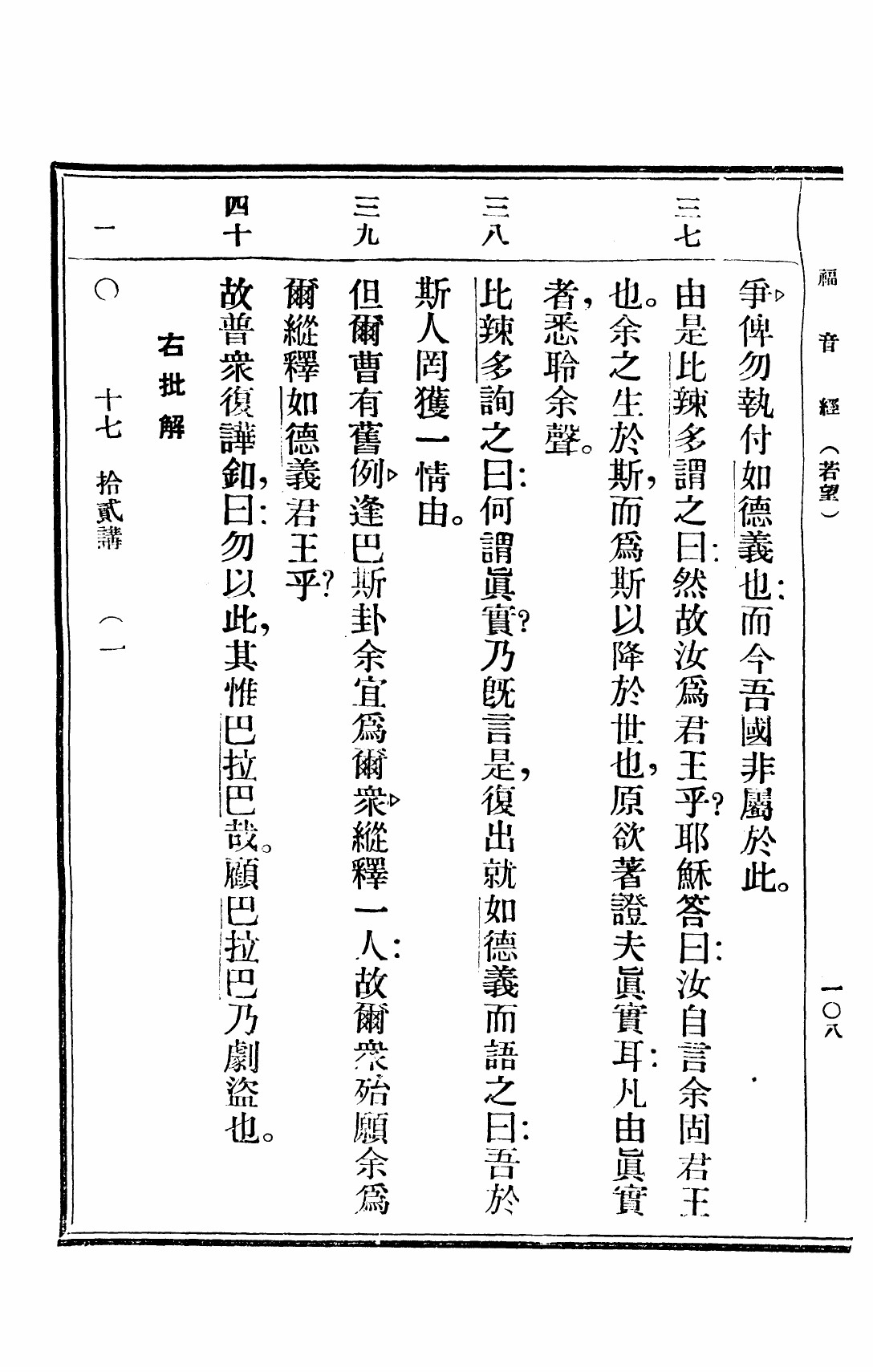 1949年救世福音 约翰福音 18 章 37 节到 18 章 40 节
