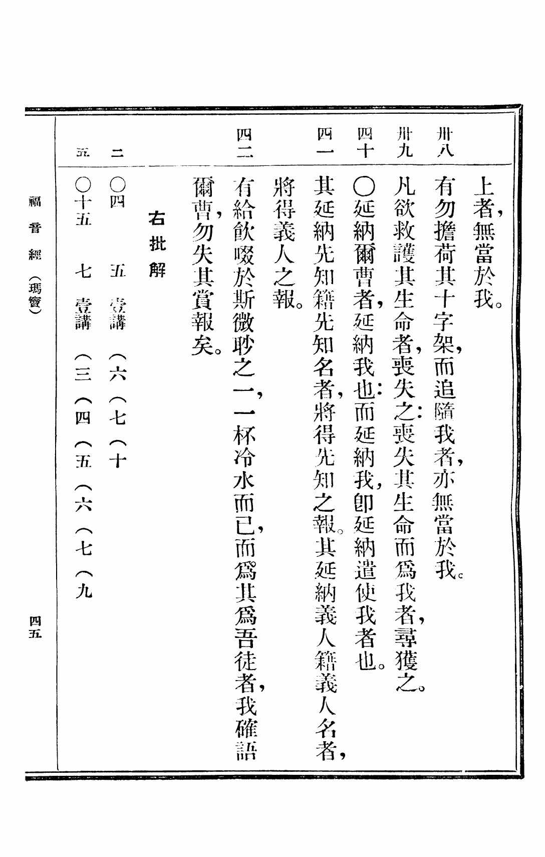 1949年救世福音 马太福音 10 章 38 节到 10 章 42 节