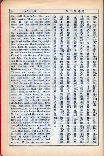 1931年新约全书广东话新译本与美国新译英文 马可福音 3 章 12 节到 3 章 27 节