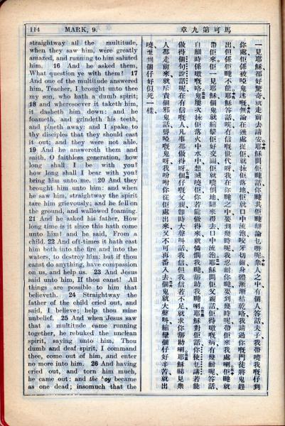 1931年新约全书广东话新译本与美国新译英文 马可福音 9 章 15 节到 9 章 26 节