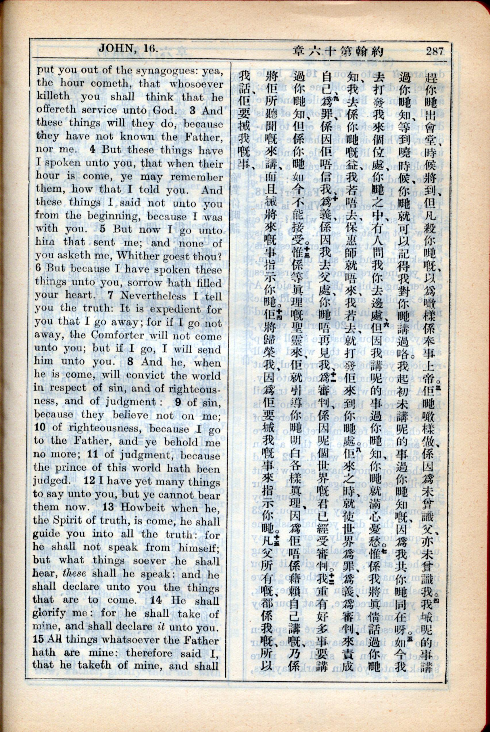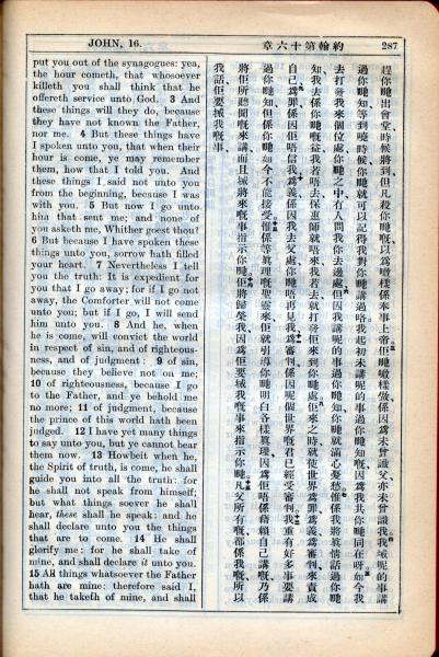 1931年新约全书广东话新译本与美国新译英文 约翰福音 16 章 3 节到 16 章 15 节