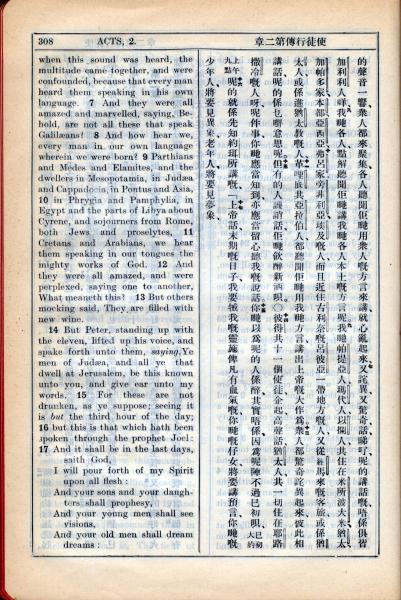 1931年新约全书广东话新译本与美国新译英文 使徒行传 2 章 6 节到 2 章 17 节