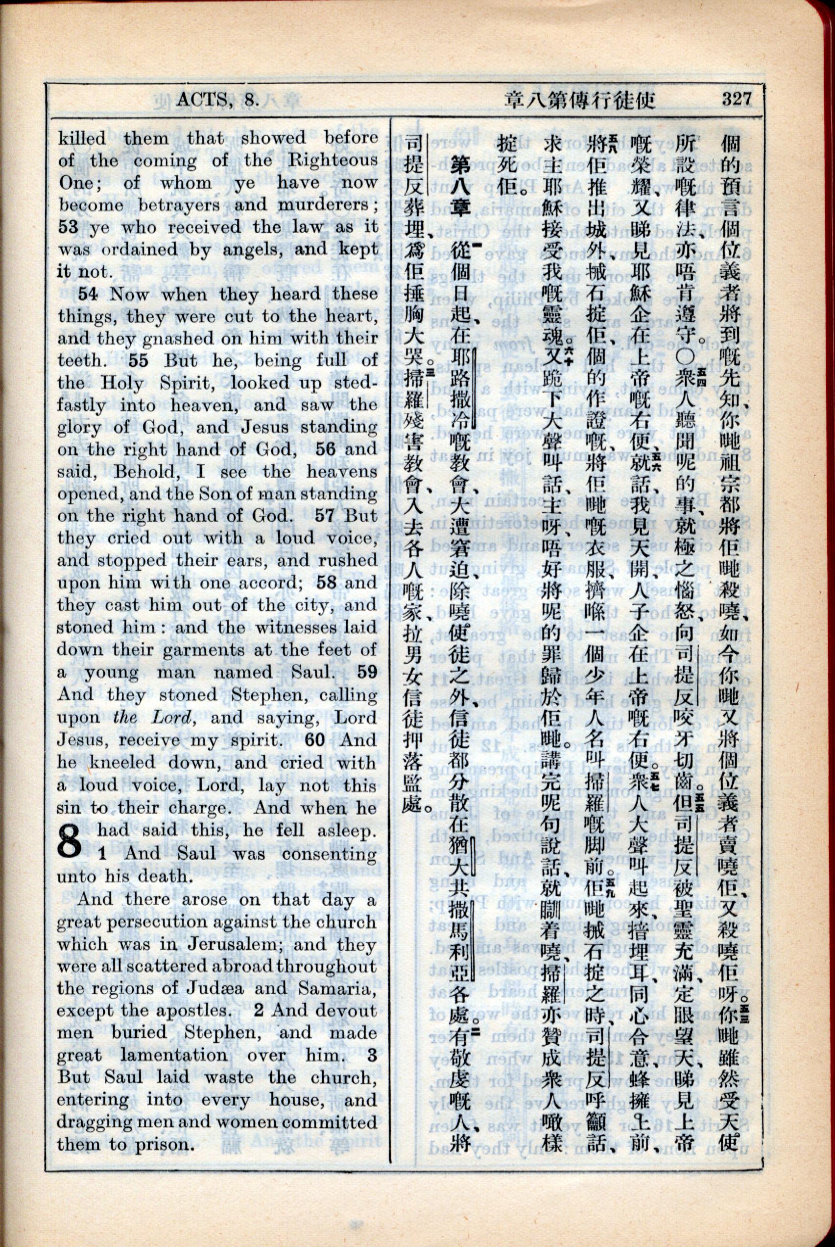 1931年新约全书广东话新译本与美国新译英文 使徒行传 7 章 53 节到 8 章 3 节