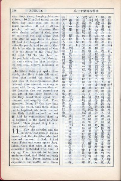 1931年新约全书广东话新译本与美国新译英文 使徒行传 10 章 40 节到 11 章 4 节