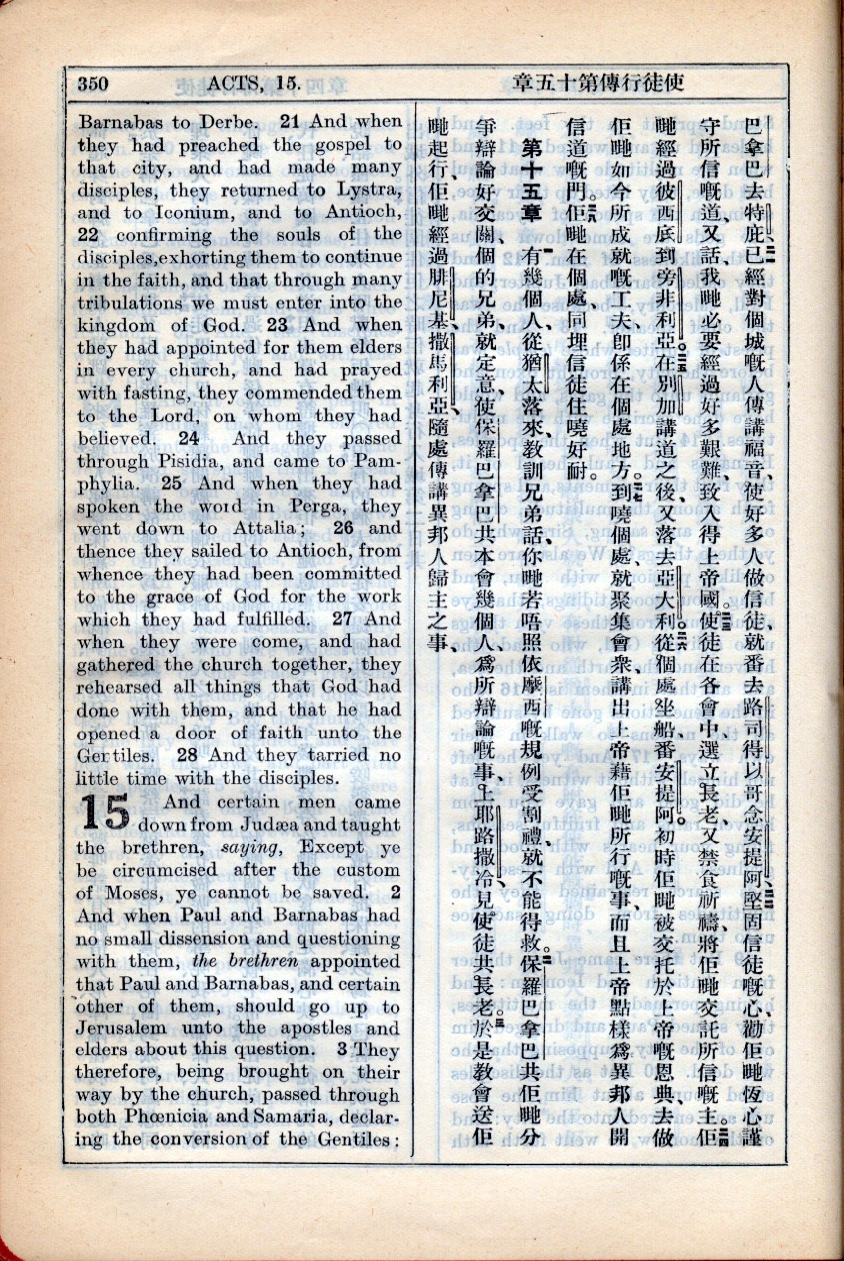 1931年新约全书广东话新译本与美国新译英文 使徒行传 14 章 21 节到 15 章 3 节