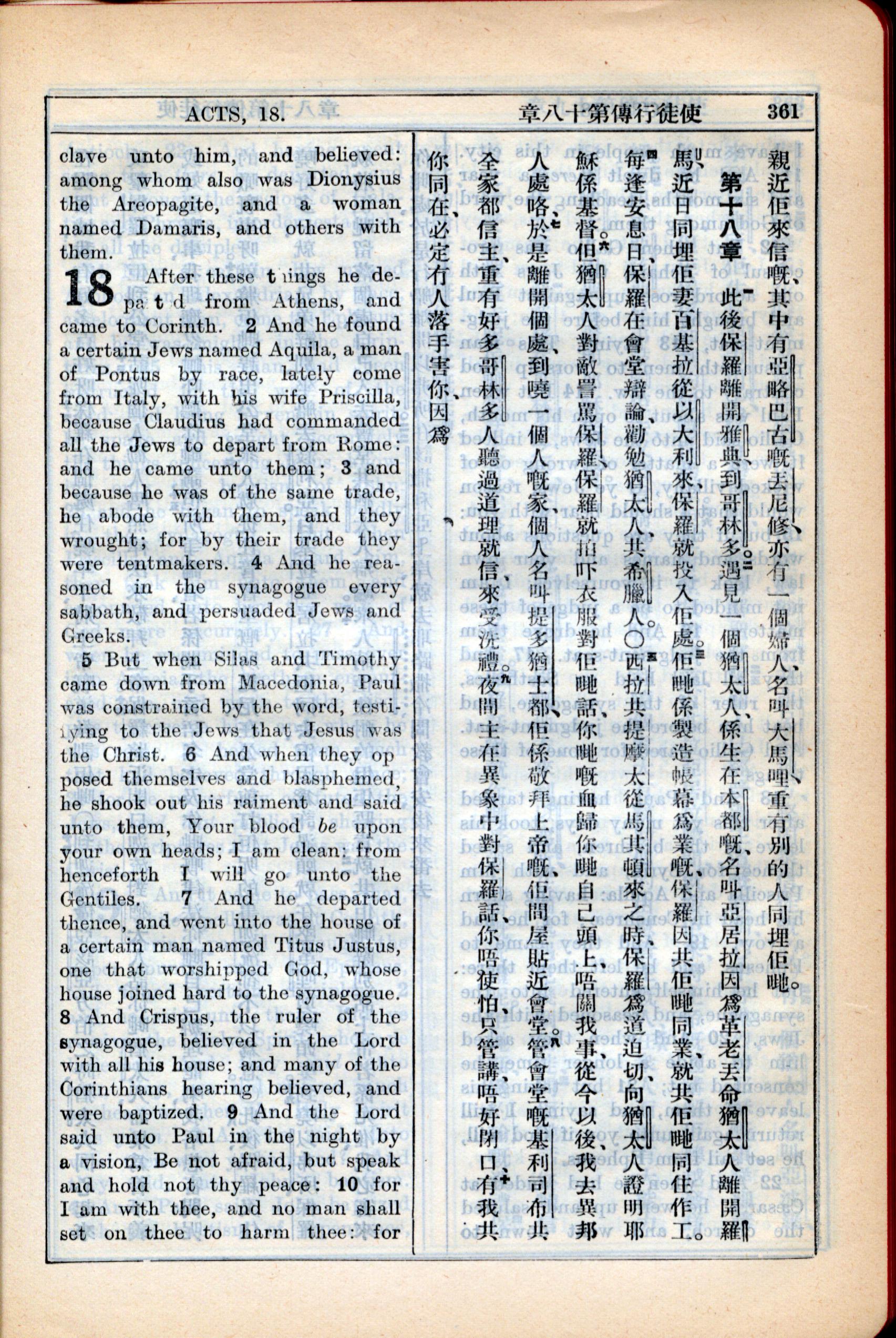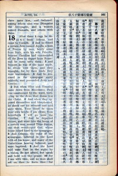 1931年新约全书广东话新译本与美国新译英文 使徒行传 17 章 34 节到 18 章 10 节