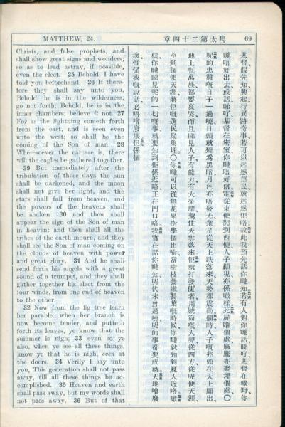 1931年新约全书广东话新译本与美国新译英文 马太福音 24 章 24 节到 24 章 35 节