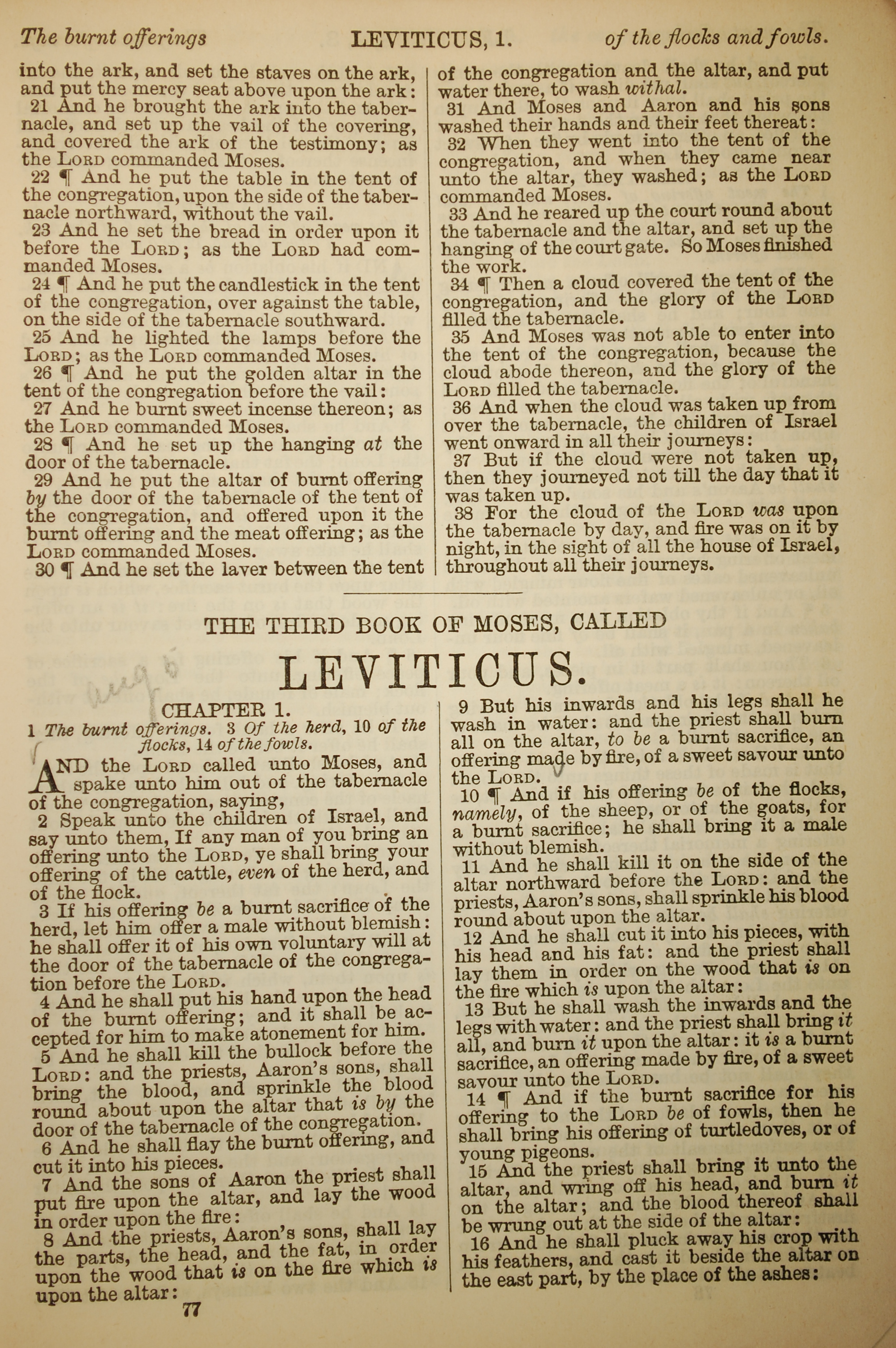 1886年英文圣经 利未记 1 章 1 节到 1 章 16 节