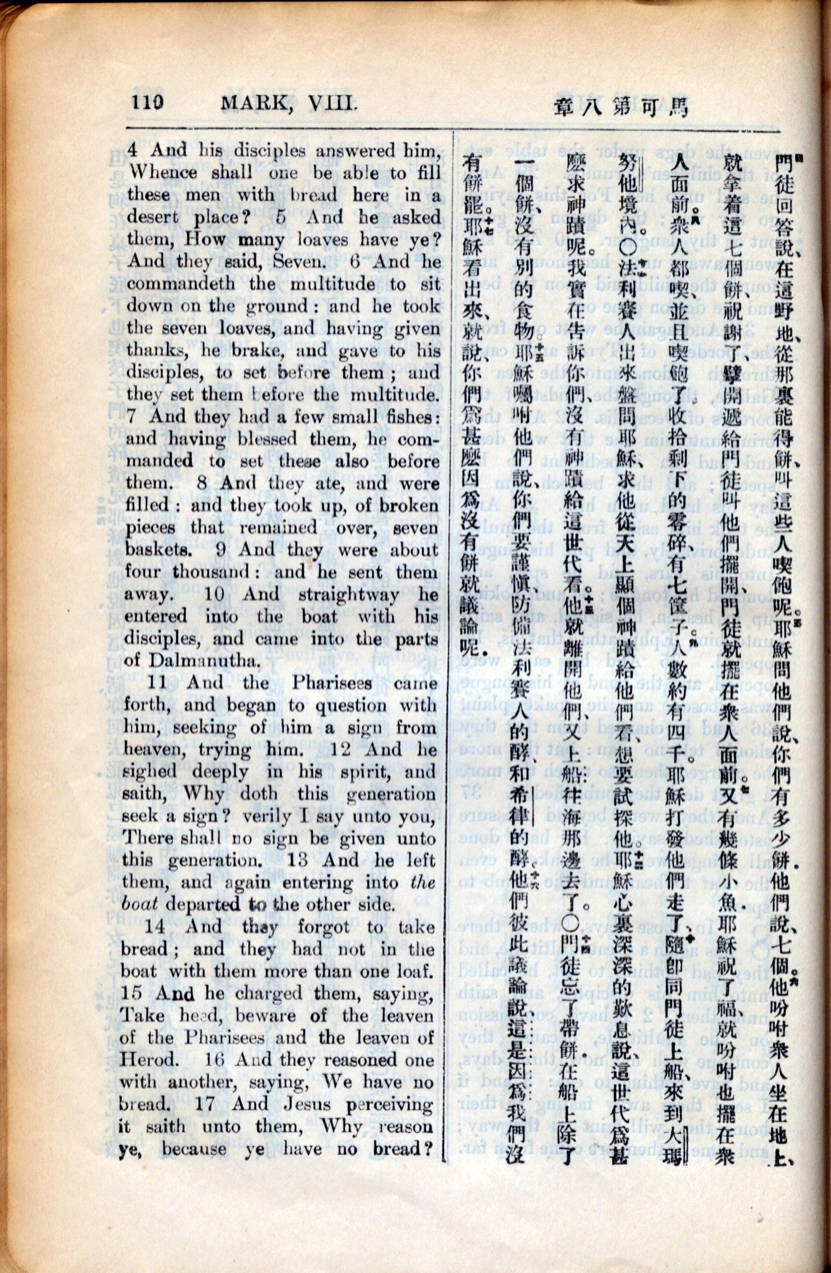 1936年新约全书 马可福音 8 章 4 节到 8 章 17 节