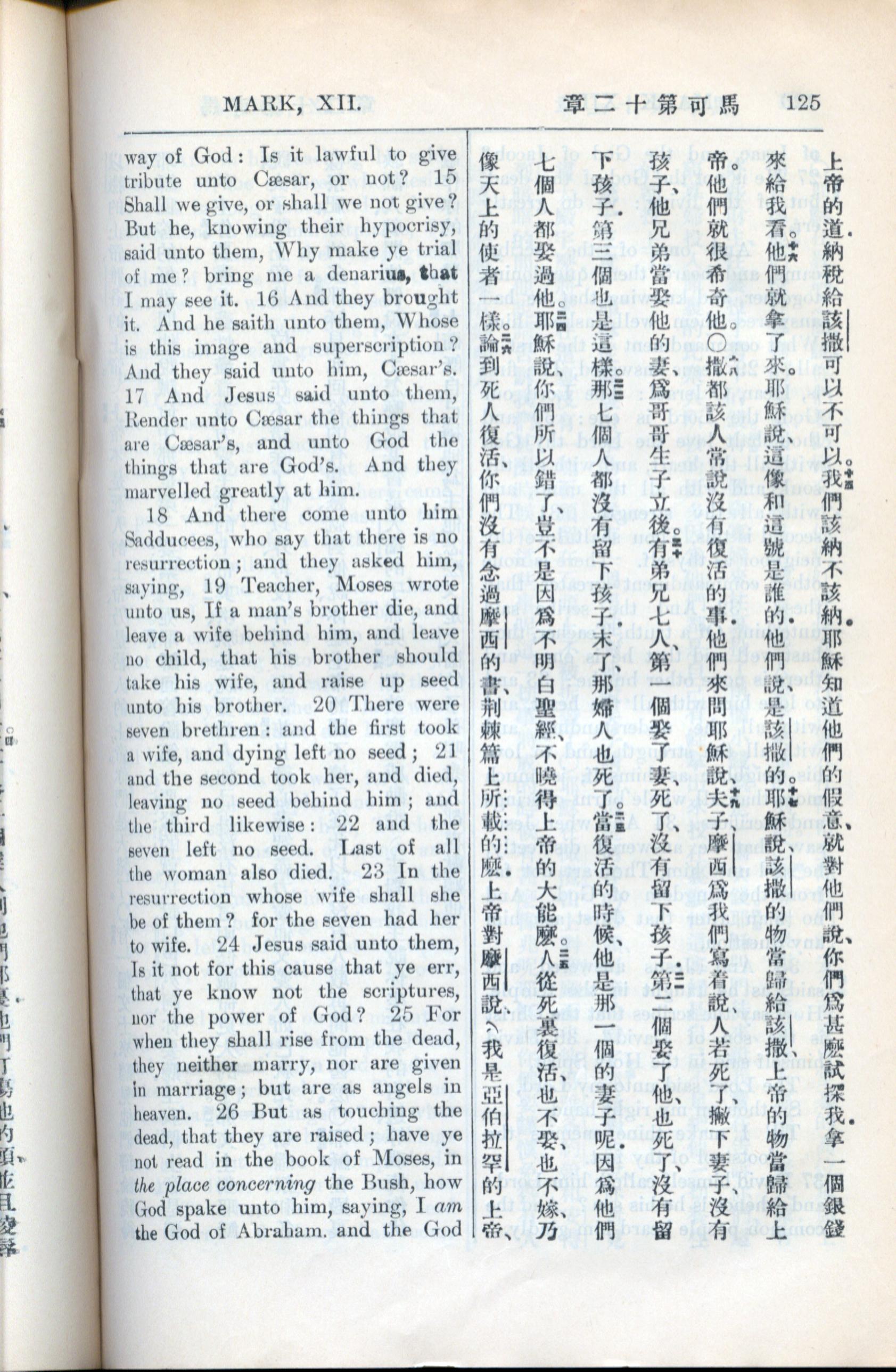 1936年新约全书 马可福音 12 章 15 节到 12 章 26 节