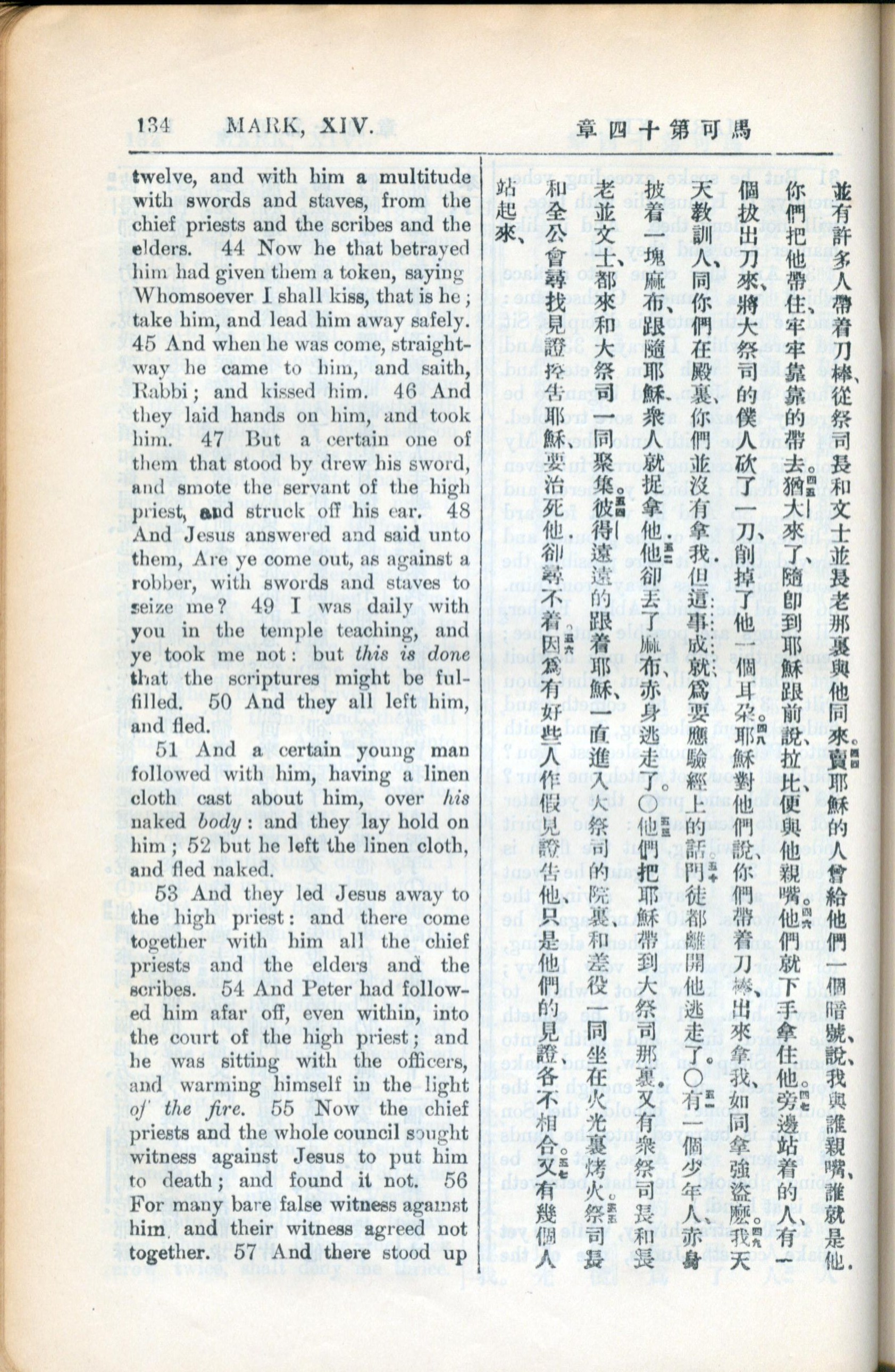 1936年新约全书 马可福音 14 章 44 节到 14 章 56 节