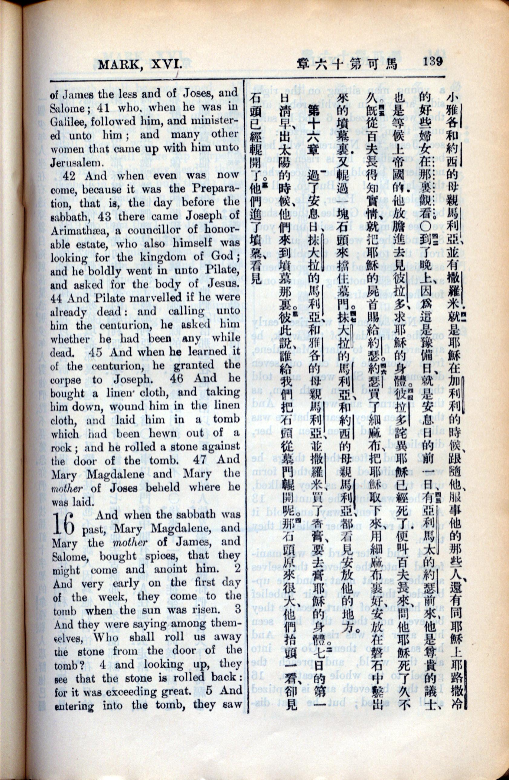 1936年新约全书 马可福音 15 章 41 节到 16 章 5 节