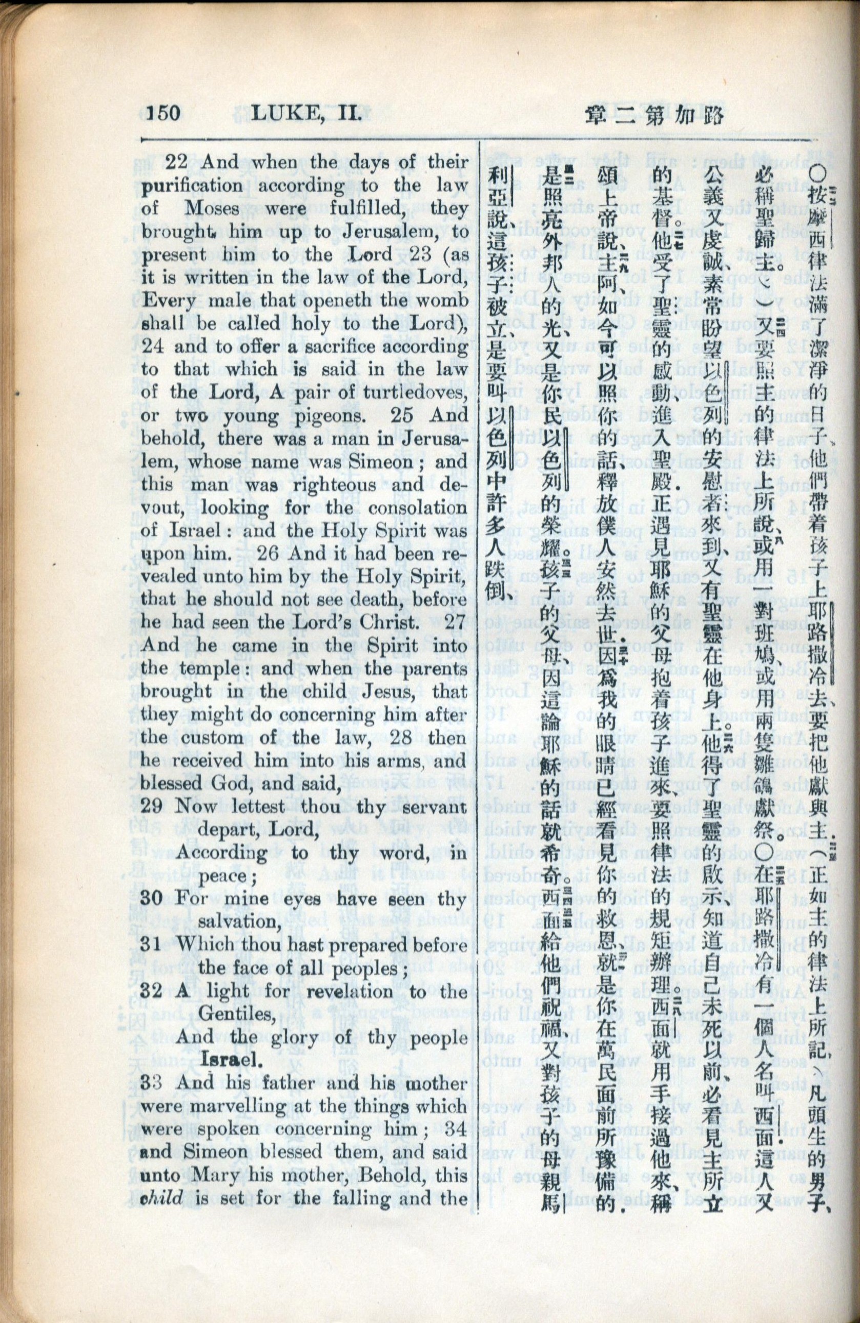 1936年新约全书 路加福音 2 章 22 节到 2 章 34 节