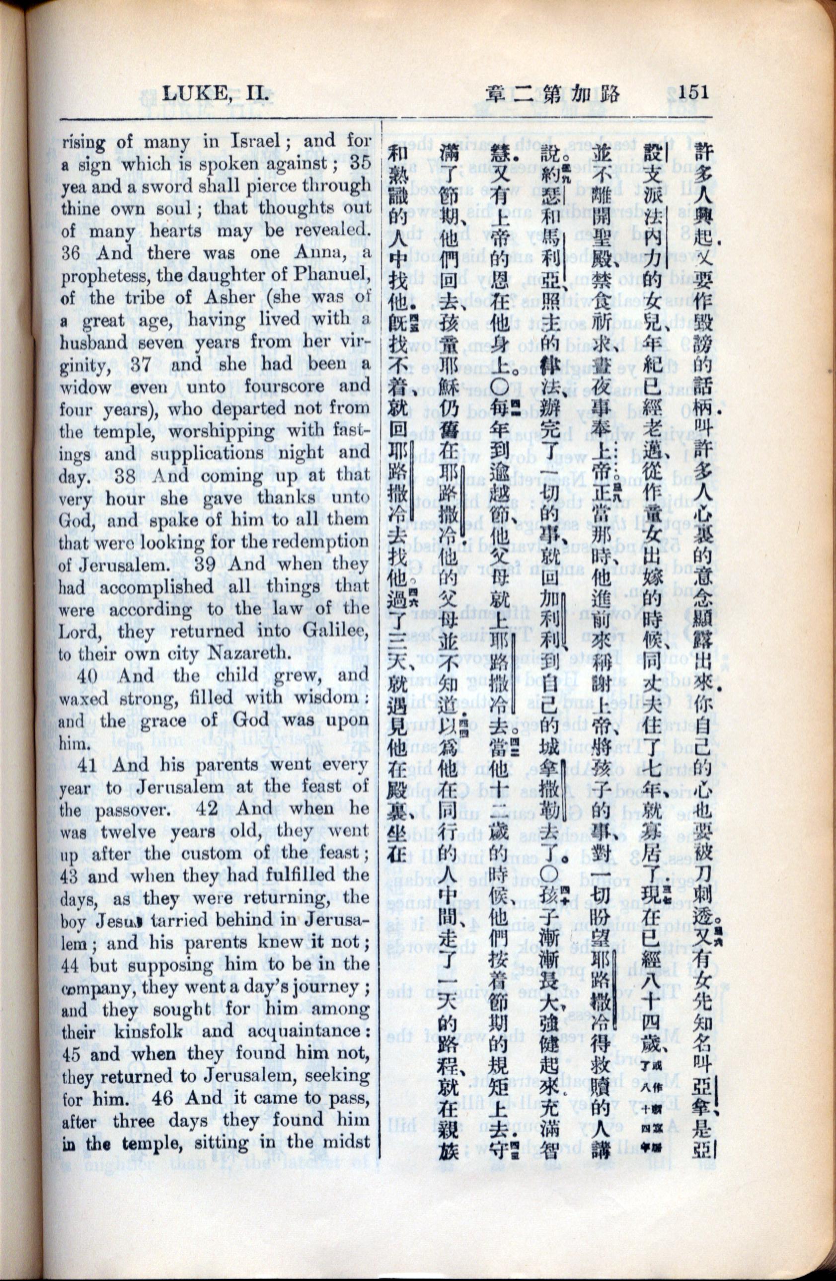 1936年新约全书 路加福音 2 章 35 节到 2 章 46 节