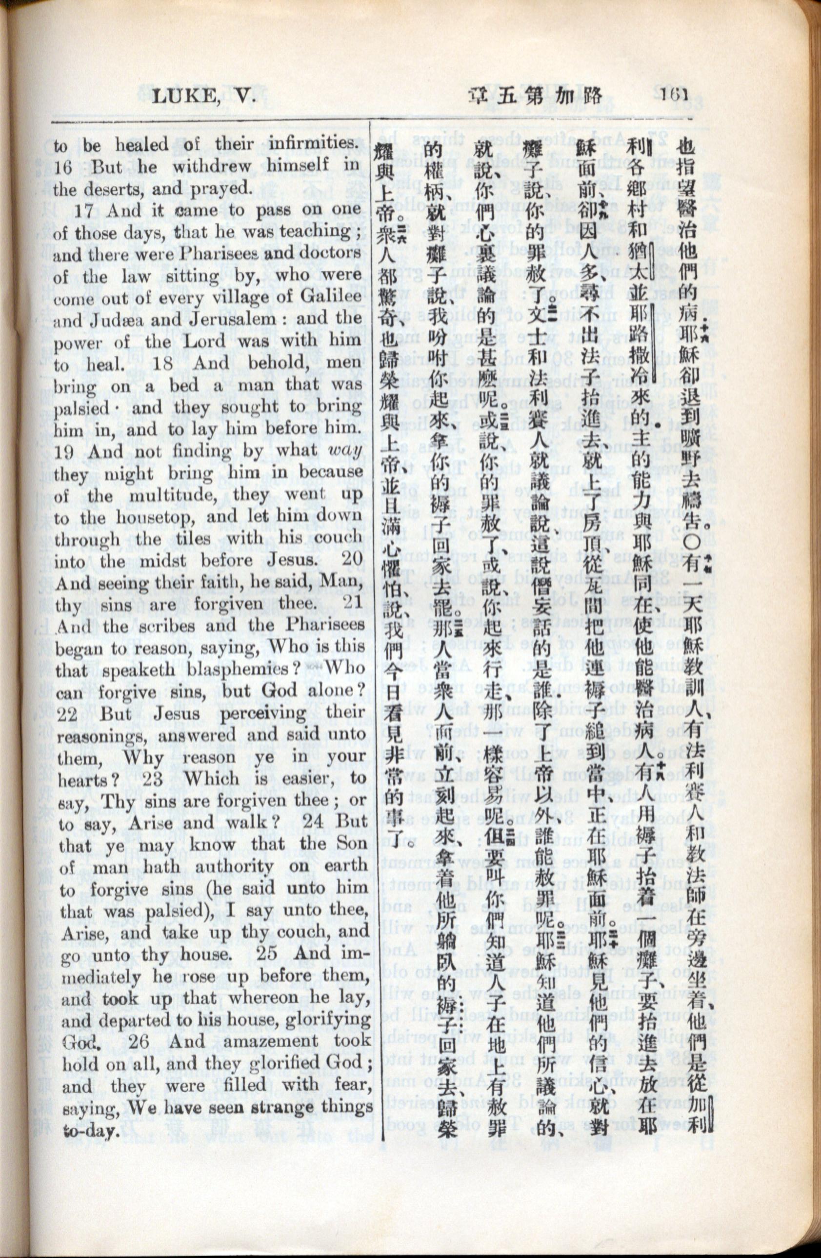 1936年新约全书 路加福音 5 章 16 节到 5 章 26 节