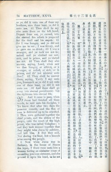 1936年新约全书 马太福音 25 章 41 节到 26 章 7 节