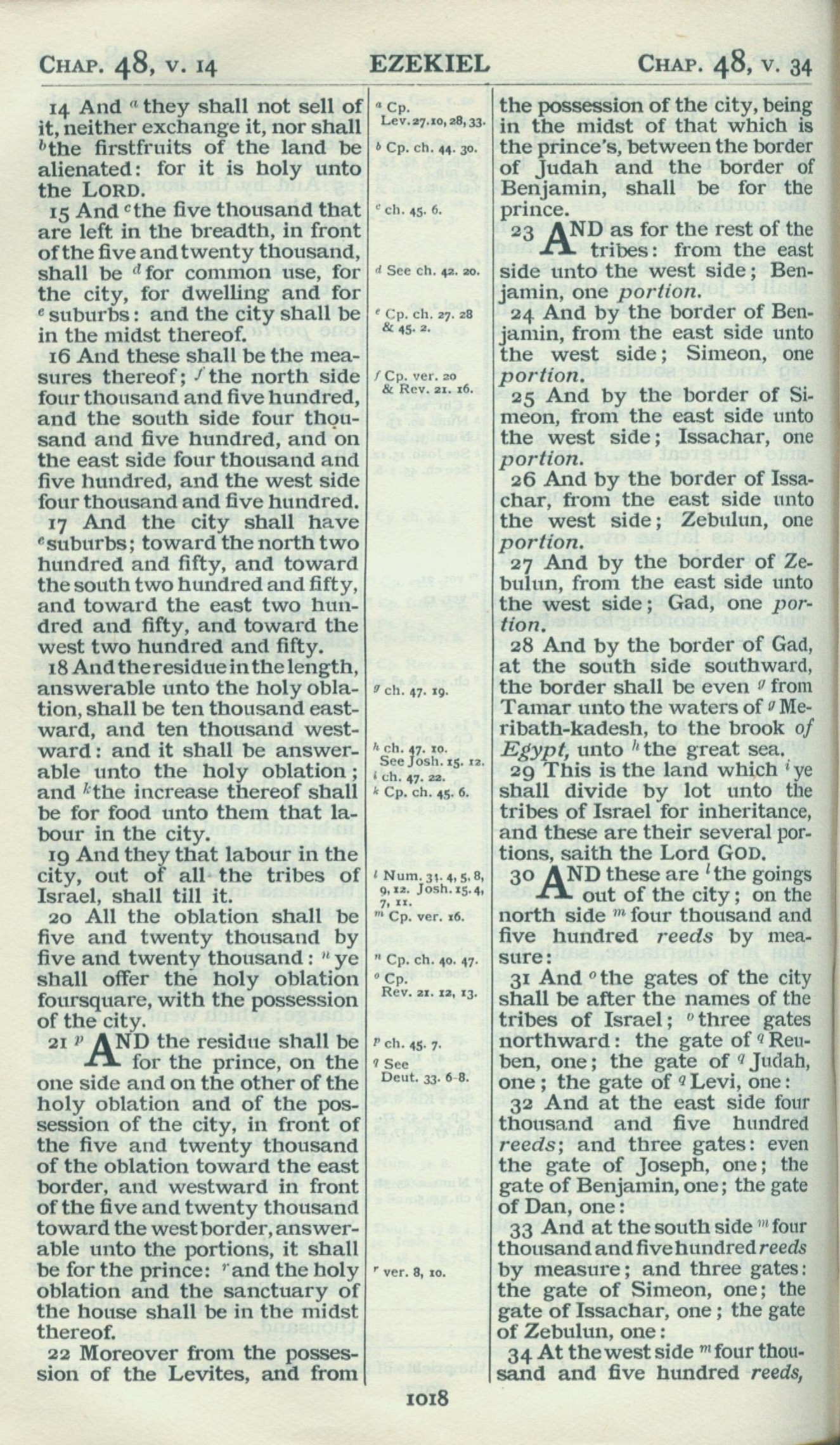 1898年Revised Version 以西结书 48 章 14 节到 48 章 34 节