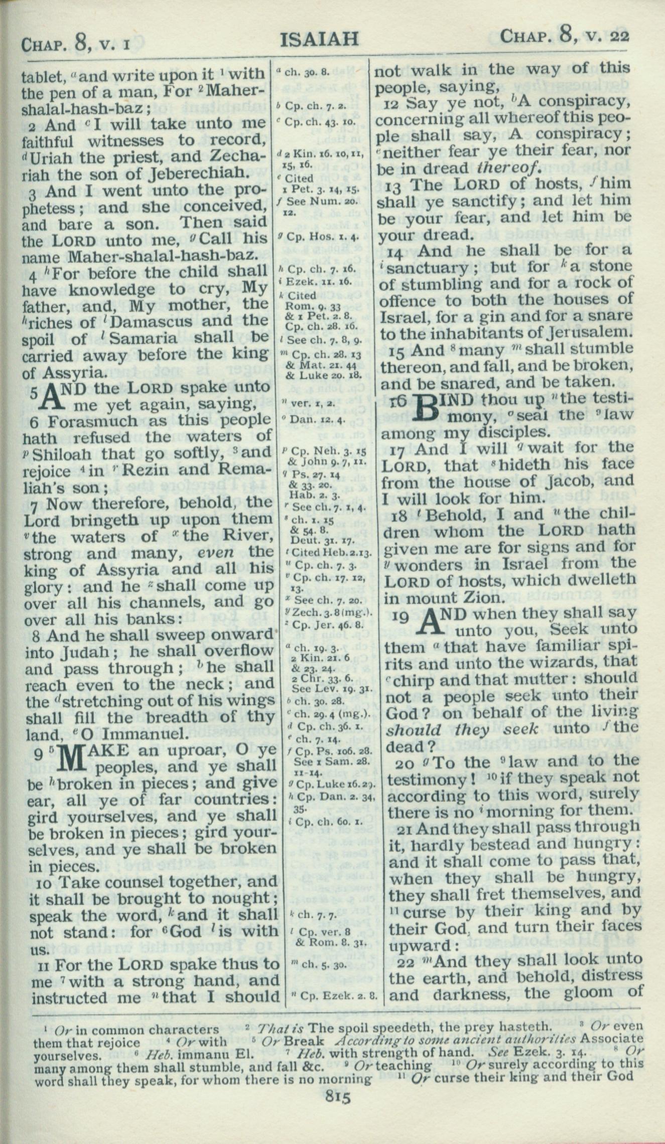 1898年Revised Version 以赛亚书 8 章 2 节到 8 章 22 节