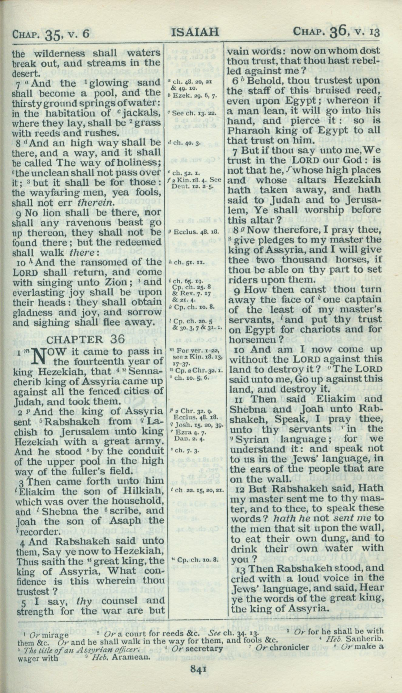 1898年Revised Version 以赛亚书 35 章 7 节到 36 章 13 节