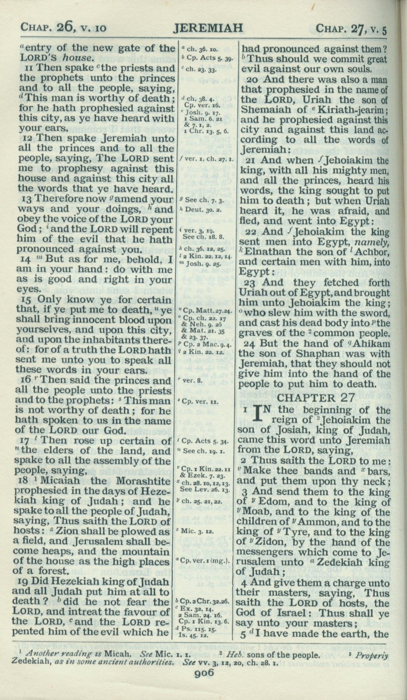 1898年Revised Version 耶利米书 26 章 11 节到 27 章 4 节