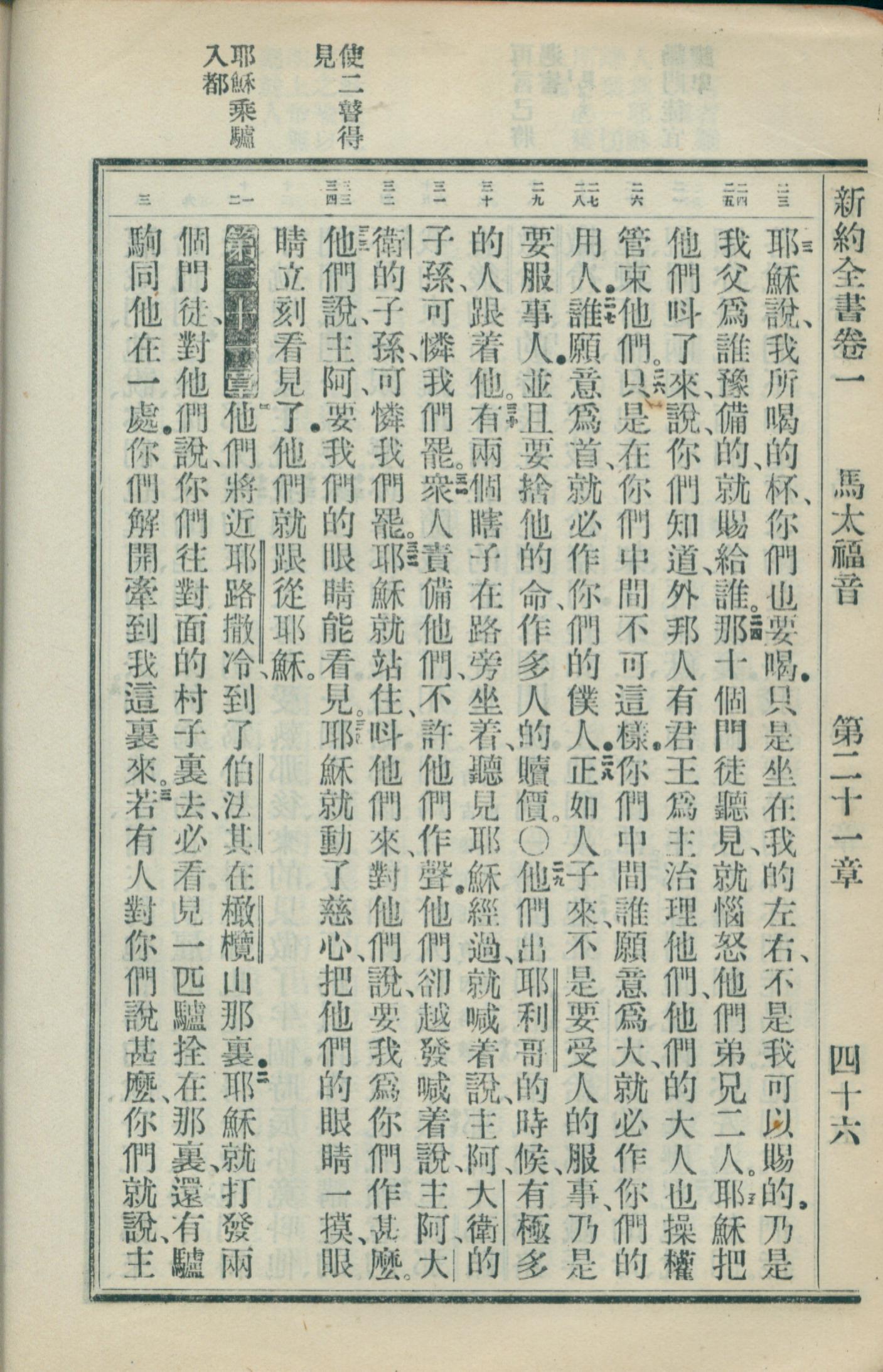 1908年新约全书(官话和合本) 马太福音 20 章 23 节到 21 章 3 节