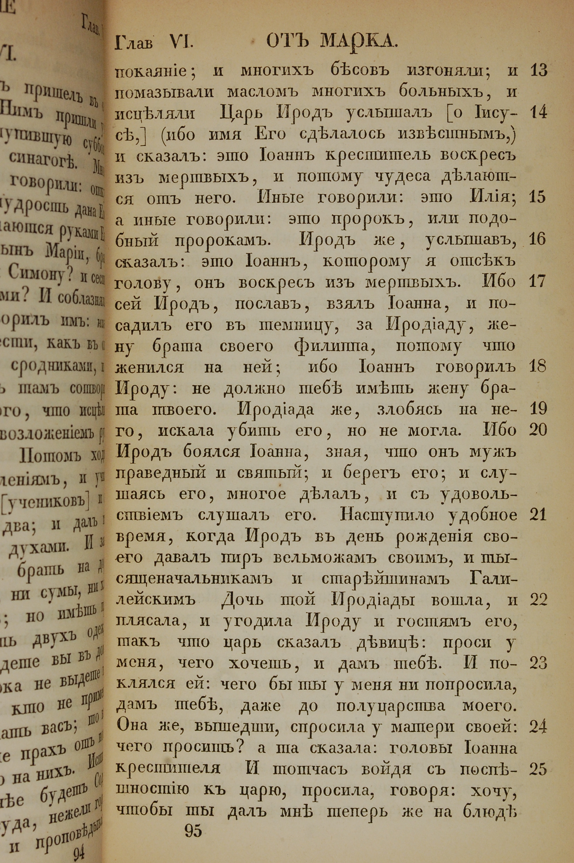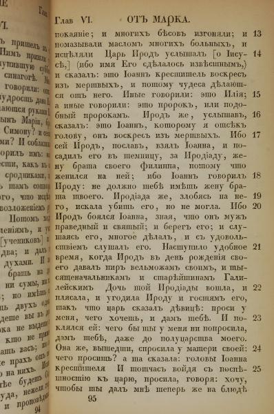 1855年俄文新约全书 马可福音 6 章 13 节到 6 章 25 节