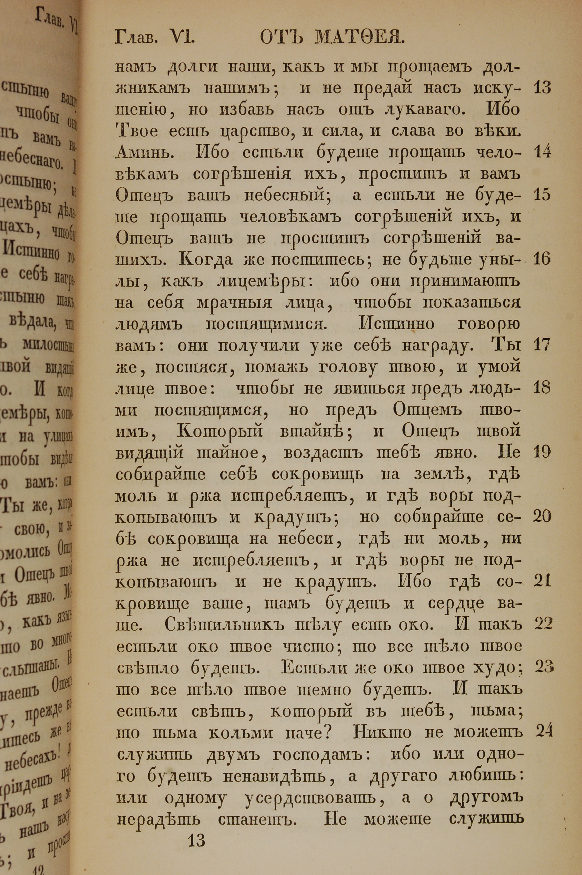1855年俄文新约全书 马太福音 6 章 13 节到 6 章 24 节