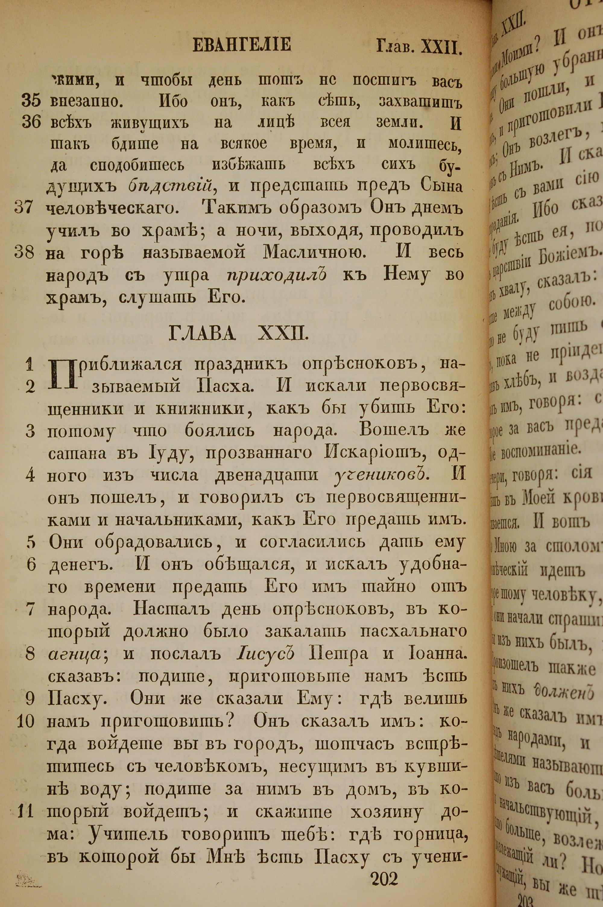 1855年俄文新约全书 路加福音 21 章 35 节到 22 章 11 节