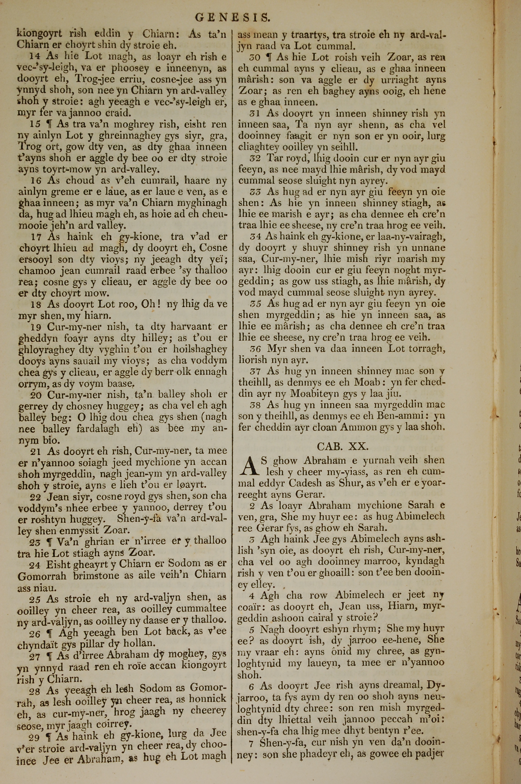 1819年曼岛语圣经 创世记 19 章 14 节到 20 章 7 节
